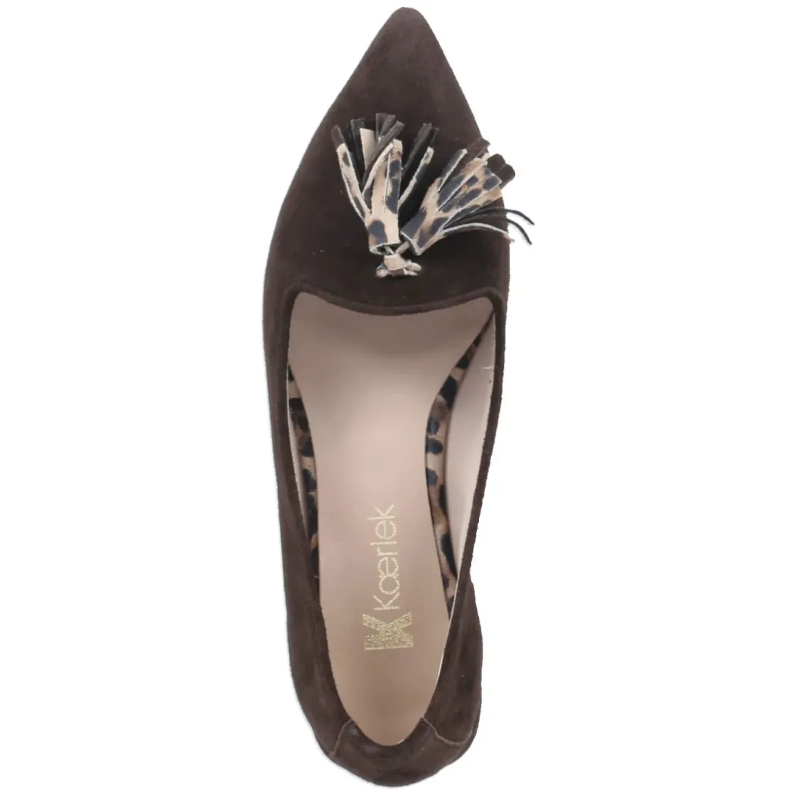 Die Ballerinas von Kaerlek verbinden feminine Eleganz mit angenehmem Tragekomfort. Das dunkelbraune Rauleder mit samtiger Oberfläche betont die spitze Silhouette und wird durch zwei Quasten mit Leo-Print am Zehenbereich stilvoll akzentuiert. Eine verstärkte Ferse sorgt für Formstabilität, die flexible Laufsohle unterstützt natürliche Abrollbewegungen. Die hautfreundliche Lederdecksohle mit integriertem Fersenpolster mildert Druckstellen und begleitet sicher durch lange Tage. Der 1,5 cm hohe Blockabsatz verleiht dezenten Stand ohne Einbußen an Bequemlichkeit. Als slip-on gestaltet, gelingt das Hineinschlüpfen unkompliziert. Das Modell für Damen fällt normal aus und überzeugt als elegante Wahl für den Alltag im Büro wie für Anlässe am Abend. Modetipp: Zu Zigarettenhose und cremefarbener Seidenbluse entsteht ein moderner City-Look, der mit goldfarbenen Schmuckdetails und einer strukturierten Box-Bag besonders harmonisch wirkt.