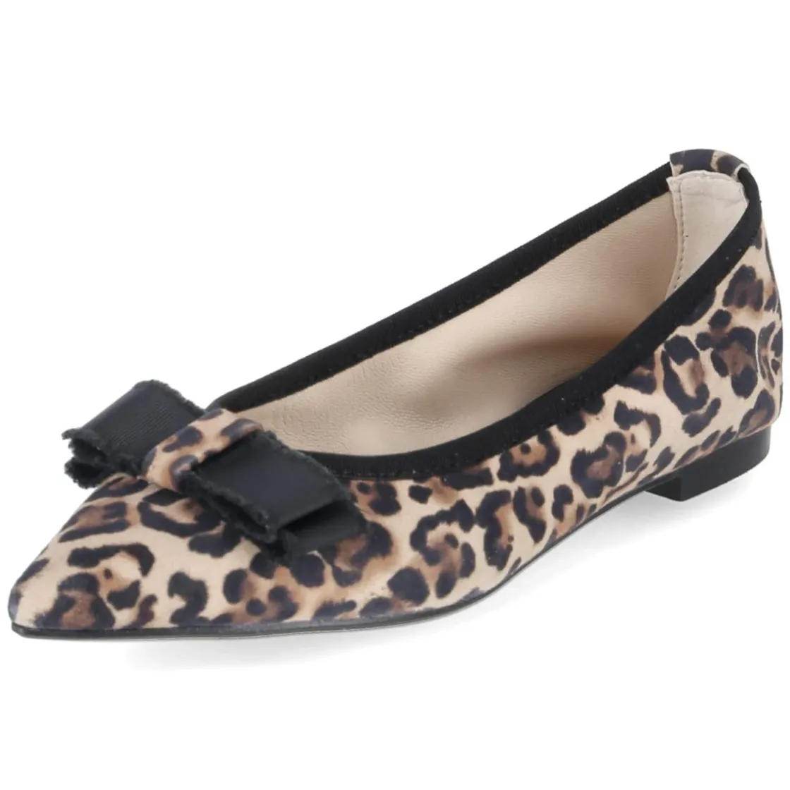 Kaerlek interpretiert den klassischen Ballerina mit spitzer Silhouette und einem dezenten 1,5‑cm-Blockabsatz neu. Weiches Rauleder in Beige trifft auf markanten Animalprint im Leopardendessin, vollendet von einer zierenden Schleife auf der Zehenpartie. Langlebiges Echtleder und hautfreundliches Lederfutter sorgen gemeinsam mit einer Lederdecksohle samt Fersenpolster für angenehmen Tragekomfort, während verstärkte Ferse und flexible Laufsohle Stabilität und Leichtigkeit vereinen. Ohne Verschluss, fällt normal aus und wirkt als relaxtes Leichtgewicht elegant und alltagstauglich zugleich. Modetipp: Besonders edel kommt das Modell zu Cropped-Jeans in Dunkelblau und einer fließenden Bluse zur Geltung; ein beigefarbener Trenchcoat greift den Ton auf und lässt den Animalprint als raffiniertes Statement wirken.