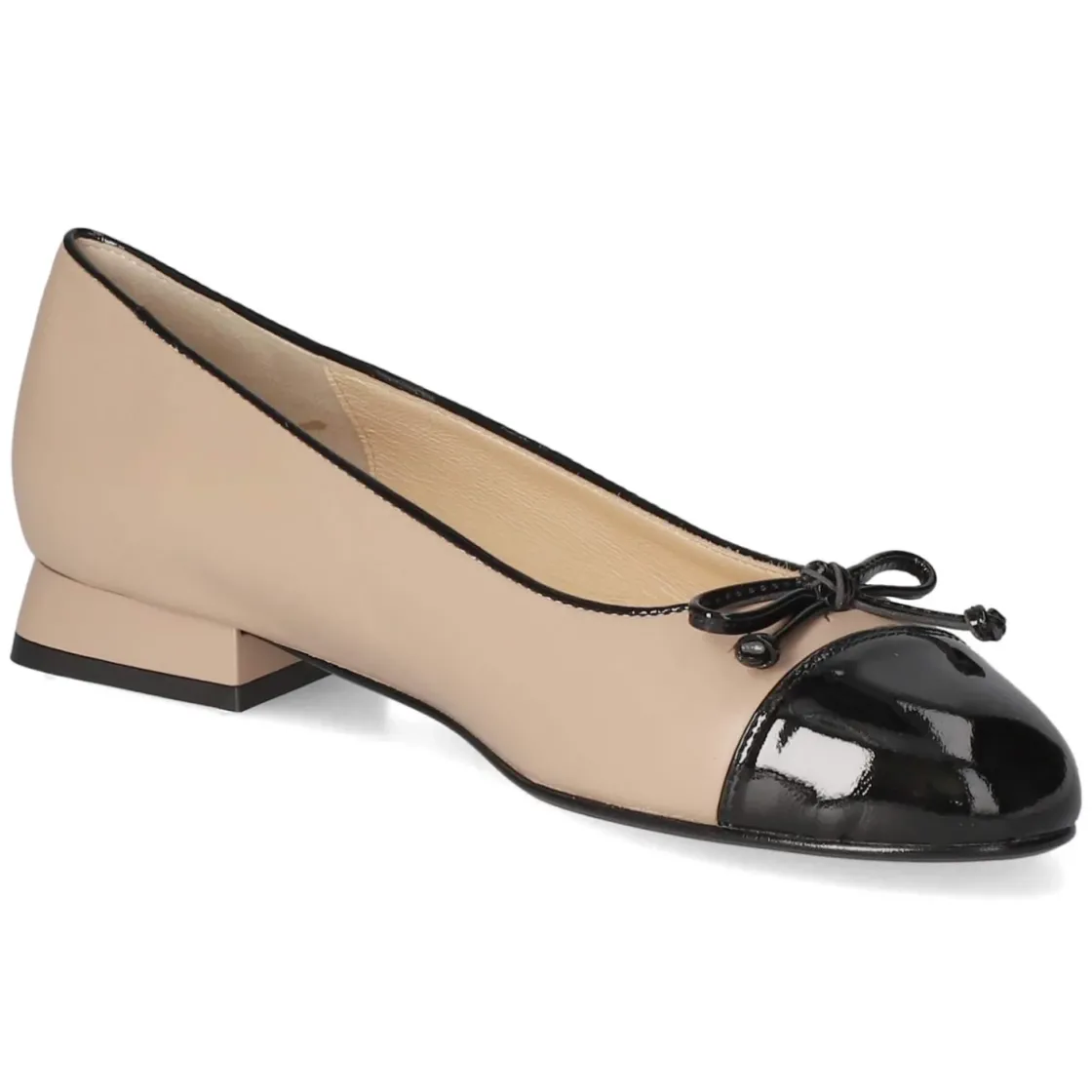 Die Ballerinas von Kaerlek verbinden zeitlose Eleganz mit komfortabler Alltagstauglichkeit. Glattes Leder in edler Lackoptik sorgt für einen feinen Glanz, während der schwarzfarbene Einstieg in Lackoptik einen stilvollen Kontrast zum warmen Beige bildet. Die runde Schuhspitze mit verstärktem Zehenbereich und die verstärkte Ferse geben zusätzliche Formstabilität. Ein 1,5 cm hoher Blockabsatz bietet dezenten Lift und sicheren Auftritt, die flexible Laufsohle unterstützt ein geschmeidiges Abrollen. Innen umschmeichelt Leder den Fuß, die hautfreundliche Lederdecksohle und das gepolsterte Lederfußbett stehen für angenehmen Tragekomfort. Ohne Verschluss gelingt der Einstieg unkompliziert, die Passform fällt normal aus. Modetipp: Zu gekrempelten Zigarettenhosen und einer feinen Bluse tragen, dazu eine schmale Clutch – so entsteht ein eleganter City-Look.
