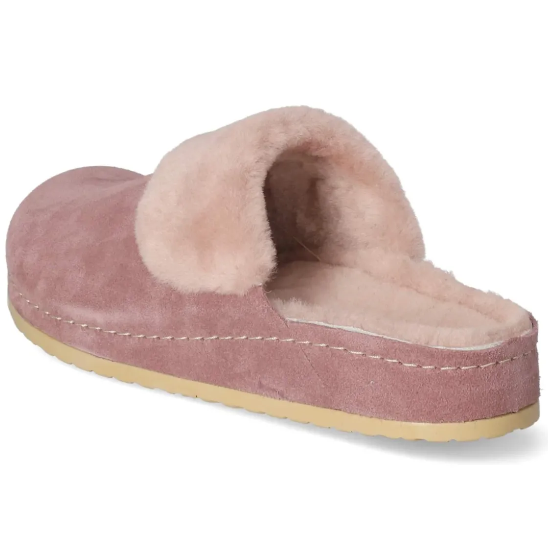 Kaerlek präsentiert mit NANA einen Hausschuh im klassischen Clog-Design, der Komfort und Stil in den eigenen vier Wänden verbindet. Langlebiges Echtleder in zartem Rosa umschließt den Fuß, ein kleiner Elastikeinsatz erleichtert den unkomplizierten Einstieg. Der weiche Lammfellrand am Spann und das Warmfutter sorgen für behagliche Wärme, während die runde Spitze und das vorgeformte, gepolsterte Lederfußbett den Tragekomfort abrunden. Die hautfreundliche Lederdecksohle und die flexible, rutschfeste Sohle begleiten zuverlässig durch den Tag. Dank der Konstruktion ohne Verschluss bleibt alles angenehm lässig. Das Modell fällt kleiner aus; für optimalen Sitz ist die Wahl einer Nummer größer ratsam. Modetipp: Zu feinstrickigen Loungebuxen und einem oversized Cardigan in Creme wirkt das Rosa besonders edel und setzt einen sanften Farbakzent.