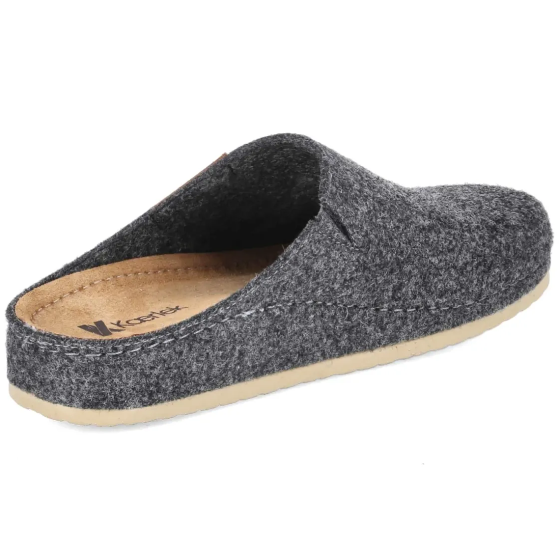 Die Pantoffeln NANA von Kaerlek verbinden klare Linien mit funktionaler Gemütlichkeit. Das melierte Grau des robusten Filz-Textilobermaterials wirkt zeitlos und fügt sich mühelos in entspannte Alltagslooks ein. Eine vorgeformte, weiche Lederdecksohle bietet angenehme Unterstützung, während der Elastikeinsatz am Schaft den Einstieg erleichtert und den Sitz stabil hält. Die runde Schuhspitze sorgt für natürliche Zehenfreiheit, die flexible Laufsohle ermöglicht geschmeidiges Abrollen auf verschiedenen Bodenarten. Als Schlupfschuh ohne Verschluss konzipiert und größengetreu in der Passform, ist das Modell auf unkomplizierte Momente im Zuhause ausgerichtet. Modetipp: Harmoniert besonders stimmig mit gerippten Wollsocken, feiner Strickhose und einem locker fallenden Cardigan in Naturtönen, wodurch das melierte Grau elegant zur Geltung kommt.