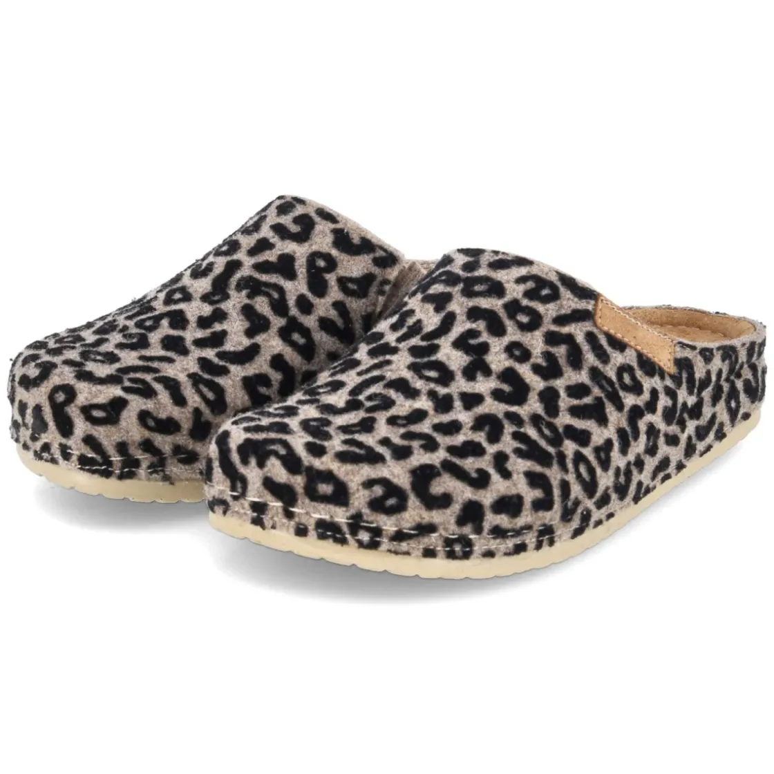 Kaerlek präsentiert mit den Pantoffeln NANA einen modernen Begleiter für entspannte Stunden. Das robuste Textilobermaterial aus Filz in Taupe harmoniert mit dem angesagten Leopardenmuster und verleiht dem Hausschuh eine moderne Optik. Die runde Schuhspitze bietet Zehenfreiheit, während der Elastikeinsatz am Spann für bequemen Halt sorgt und das Hineinschlüpfen erleichtert. Innen unterstützt eine vorgeformte, weich gepolsterte Decksohle aus Leder den Fuß, die flexible Laufsohle macht jeden Schritt angenehm leise. Das Modell fällt normal aus und richtet sich an erwachsene Damen, die Komfort und Stil verbinden möchten. Modetipp: Zu melierten Stricksets in Creme oder Sand kombiniert, unterstreicht der Animal Print den Look und setzt einen dezenten, modischen Akzent.