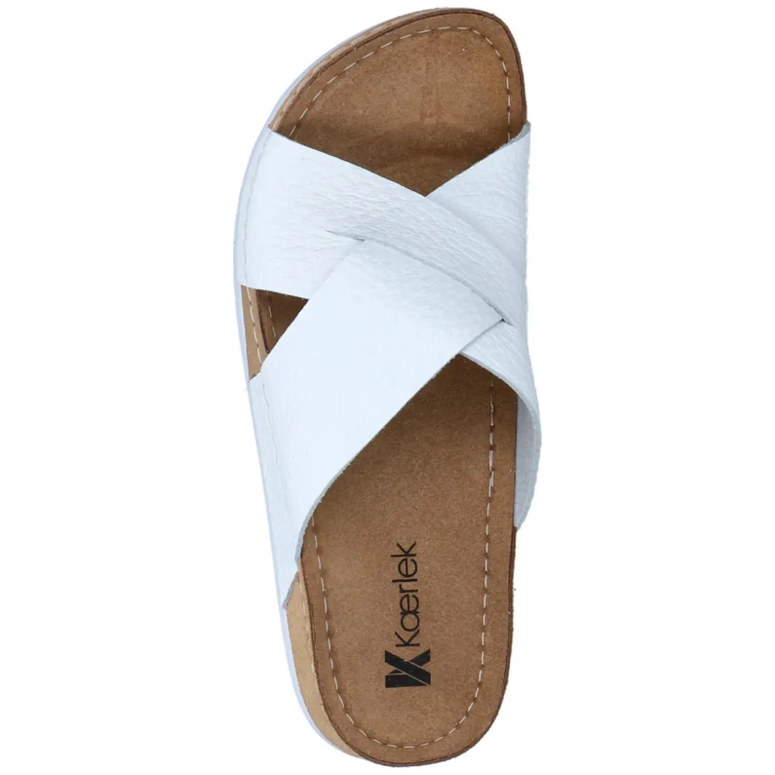 Die Kaerlek Pantoletten vereinen zeitlose Eleganz mit komfortorientierter Funktion. Glattes, weißes Echtleder formt zwei breite, überkreuzte Riemen, die den Spann sicher umschließen und das modische Design unterstreichen. Das vorgeformte, weiche Tieffußbett mit Lederdecksohle sorgt für angenehme Dämpfung und ein natürliches Fußklima, während die flexible Profilsohle zuverlässigen Halt bietet. Ohne Verschluss und mit offener Schuhspitze gelingt das Hineinschlüpfen mühelos. Die hochwertige Verarbeitung aus langlebigem Leder begleitet durch viele Saisons. Hinweis: fällt schmaler aus. Modetipp: zu einem cremefarbenen Leinen-Set oder einem fließenden Midi-Kleid stylen, dazu eine strukturierte Basttasche für einen luftigen Sommer-Look.