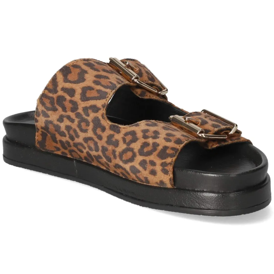 Die Pantoletten von Kaerlek vereinen edle Optik mit Alltagstauglichkeit. Der beige Ton harmoniert mit dem markanten Leopardmuster und setzt einen stilvollen Animal-Print-Akzent. Langlebiges Echtleder in Rauleder-Qualität sorgt für eine wertige Haptik, während die hautfreundliche Lederdecksohle ein angenehmes Fußklima fördert. Die offene Schuhspitze verleiht Leichtigkeit, die verstellbare Schnalle gewährleistet passgenauen Halt. Eine flexible, rutschhemmende Laufsohle unterstützt sicheren Schritt auf verschiedenen Untergründen und macht das Modell zum komfortablen Begleiter für Stadtbummel ebenso wie für den After-Work-Treff. Modetipp: Ton-in-Ton mit sandfarbener Leinenhose und cremefarbenem Stricktop tragen, dazu filigraner Goldschmuck – so wird der Animal Print zum eleganten Fokus, ohne das Outfit zu überladen.
