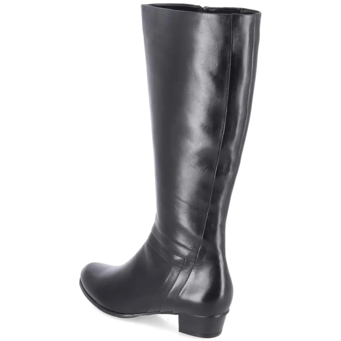 Der Damenstiefel von Kaerlek verkörpert zeitlose Eleganz und angenehmen Tragekomfort. Glattes, langlebiges Echtleder prägt die klare Linienführung, während dezente Falten über dem Spann und an der äußeren Ferse dem Design eine raffinierte Note verleihen. Der 3,5 cm hohe Blockabsatz sorgt für stabilen Halt im Alltag, die runde Schuhspitze wirkt klassisch und bietet Zehenfreiheit. Ein Reißverschluss erleichtert den Einstieg, unterstützt vom Stretcheinsatz am oberen Schaft, der sich dem Bein anschmiegt. Das leichte Futter wärmt an kühlen Tagen, die textile Decksohle und ein leicht gepolstertes Fußbett erhöhen den Komfort. Mit einer Schafthöhe von ca. 39 cm und einem Umfang von ca. 38 cm sowie normaler Passform ist eine stimmige Silhouette garantiert. Modetipp: Zu Strickkleid, Wollmantel und blickdichter Strumpfhose entsteht ein eleganter City-Look.