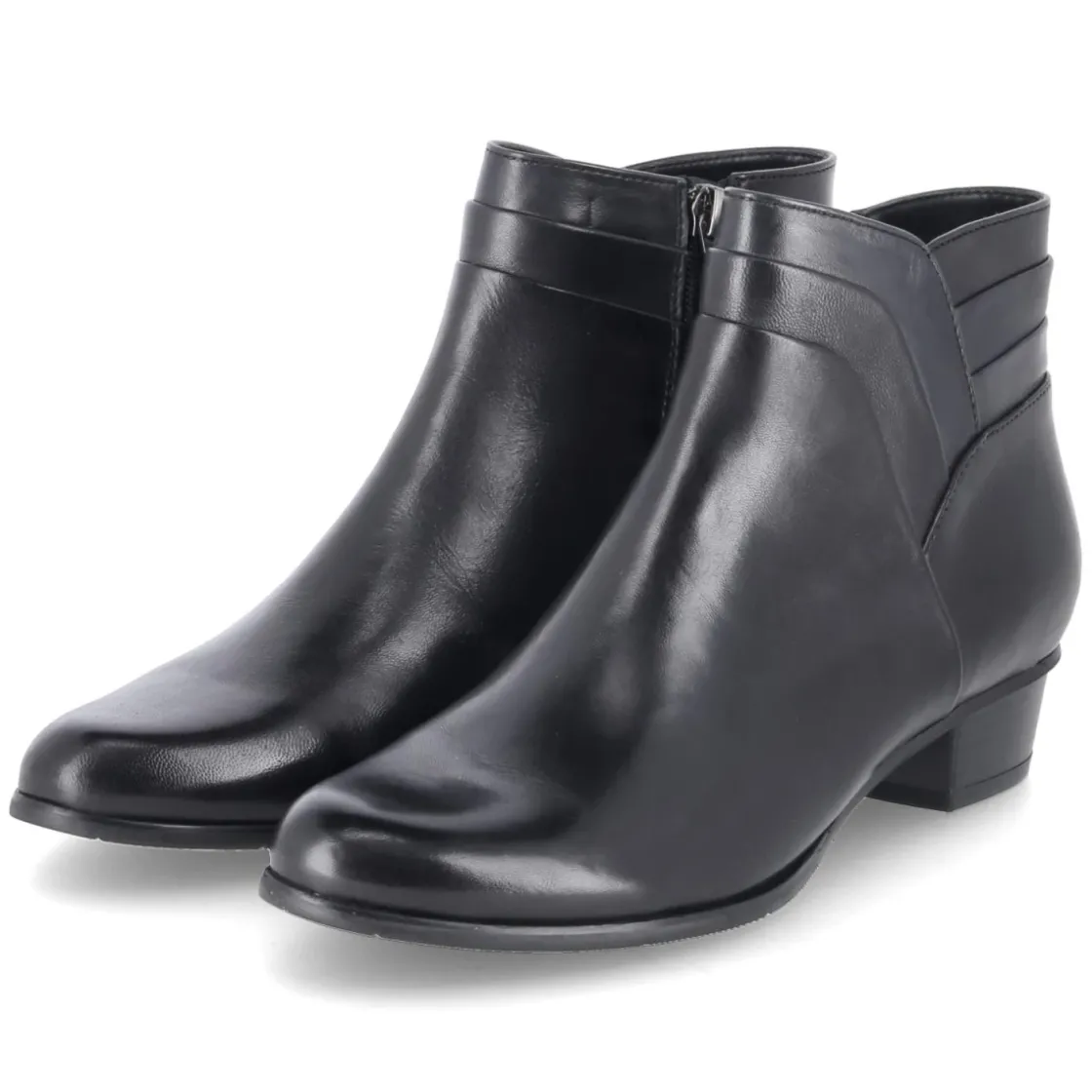 Die Damen-Stiefeletten von Kaerlek verbinden klare Linien mit funktionalen Details. Glattes, langlebiges Echtleder in tiefem Schwarz trifft auf eine runde Schuhspitze und einen stabilen 4-cm-Blockabsatz mit dezent kubanischer Anmutung. Der seitliche Reißverschluss erleichtert das Anziehen, während der Schaft mit überlagernden Elementen dem klassischen Design eine moderne Tiefe verleiht. Innen sorgt ein leichtes Fleecefutter für behagliche Wärme an kühlen Tagen, die Leder-Textil-Decksohle unterstützt ein angenehmes Fußklima. Die flexible, griffige Laufsohle gibt Halt auf urbanem Terrain, das relaxtes Leichtgewicht macht jeden Schritt mühelos. Der Fit fällt normal aus und bleibt den ganzen Tag komfortabel. Modetipp: Mit Midirock aus Satin und einem strukturierten Wollblazer entsteht ein eleganter Kontrast; alternativ verleiht eine Cropped-Denim und ein Kaschmirpullover dem Look lässige Klasse.