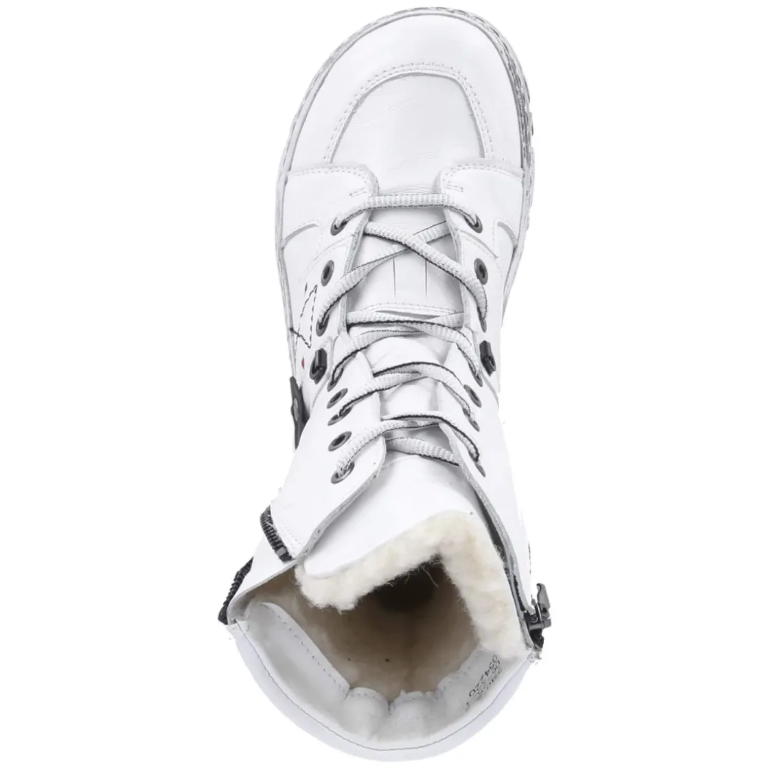 Der Schnürboot von Krisbut vereint funktionale Wärme mit moderner Optik. Glattes, langlebiges Echtleder in strahlendem Weiß trifft auf ein weiches Warmfutter, das an kalten Tagen zuverlässig schützt. Die runde Spitze und der leicht gepolsterte Schaft mit Querstepp-Details sorgen für hohen Tragekomfort, während verstärkte Fersen- und Zehenbereiche zusätzliche Stabilität bieten. Praktisch zeigt sich die Kombination aus Schnürsenkeln und Innenreißverschluss für schnellen Einstieg; außen setzt ein offener Zierreißverschluss einen modischen Akzent. Die textile Decksohle liegt angenehm am Fuß, das herausnehmbare Fußbett ermöglicht individuelle Einlagen. Eine flexible Profilsohle liefert Trittsicherheit auf verschiedenem Untergrund. Der Schnitt fällt größengetreu aus und begleitet Damen stilvoll durch den Alltag. Modetipp: Mit wolligem Mantel, Strickkleid und dicken Rippsocken entsteht ein cleaner Winterlook in Off-White-Nuancen.