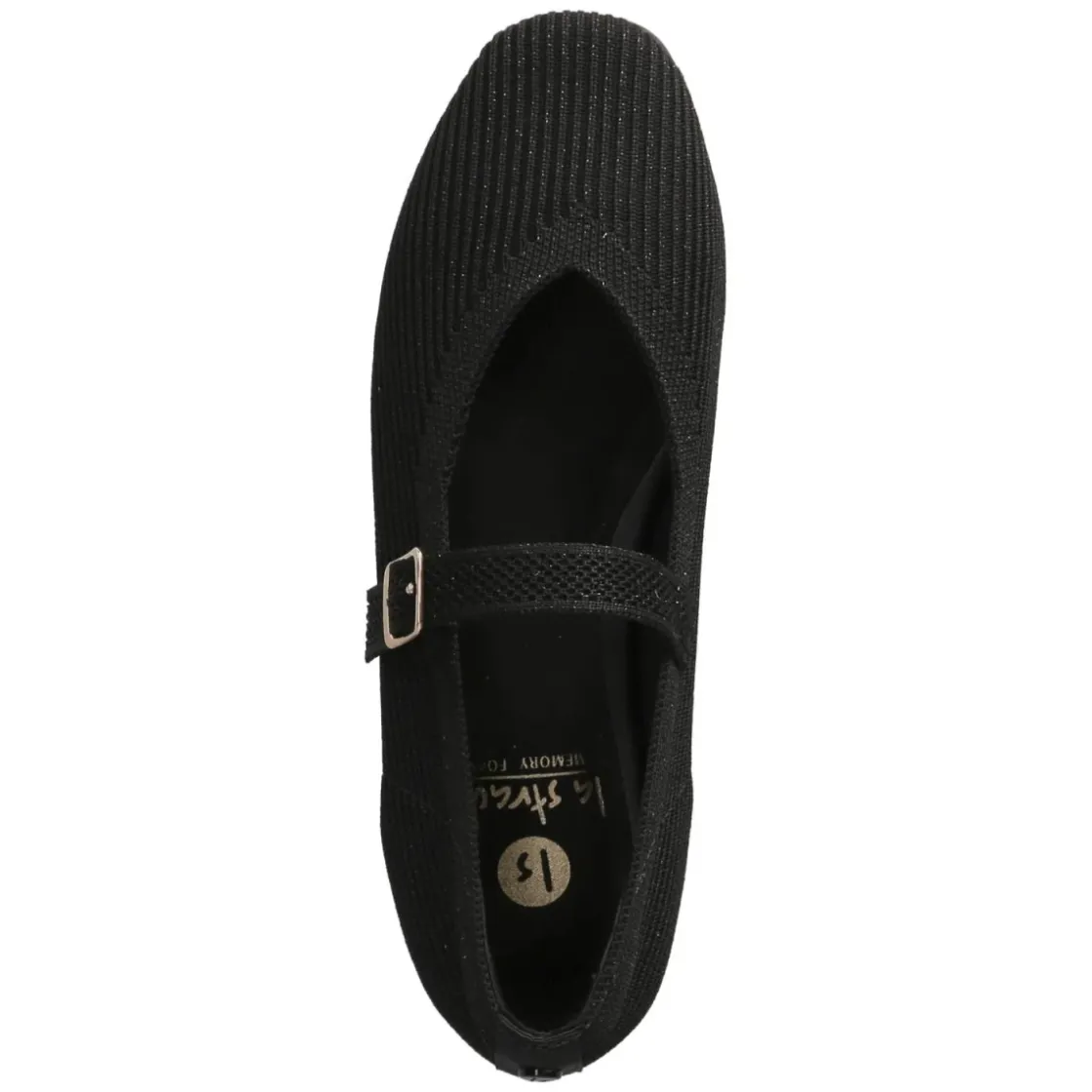 La Strada Ballerinas in Schwarz vereinen feminine Eleganz mit alltagstauglichem Komfort. Das Obermaterial aus Textil zeigt eine feine Cordoptik, die von einem dezent glitzernden Silberfaden durchzogen wird – ein schimmernder Akzent, der den cleanen Look raffiniert aufwertet. Ein Zierriemen mit goldfarbener Schnalle setzt einen edlen Kontrast und ergänzt die praktische Schnalle, die sicheren Halt verspricht. Die runde Spitze wirkt klassisch und schmeichelt dem Fuß, während die verstärkte Ferse Stabilität gibt. Für langes Tragen sorgt das weich gepolsterte Fußbett mit textiler Decksohle, die flexible, rutschhemmende Laufsohle unterstützt einen souveränen Auftritt. Der Schnitt fällt größengetreu aus und eignet sich für den unkomplizierten Einsatz vom Büro bis zum Dinner. Modetipp: Zu Cropped-Jeans und schwarzem Blazer tragen, dazu eine goldene Armspange aufgreifen – so strahlt der feine Glitzer noch stilvoller.