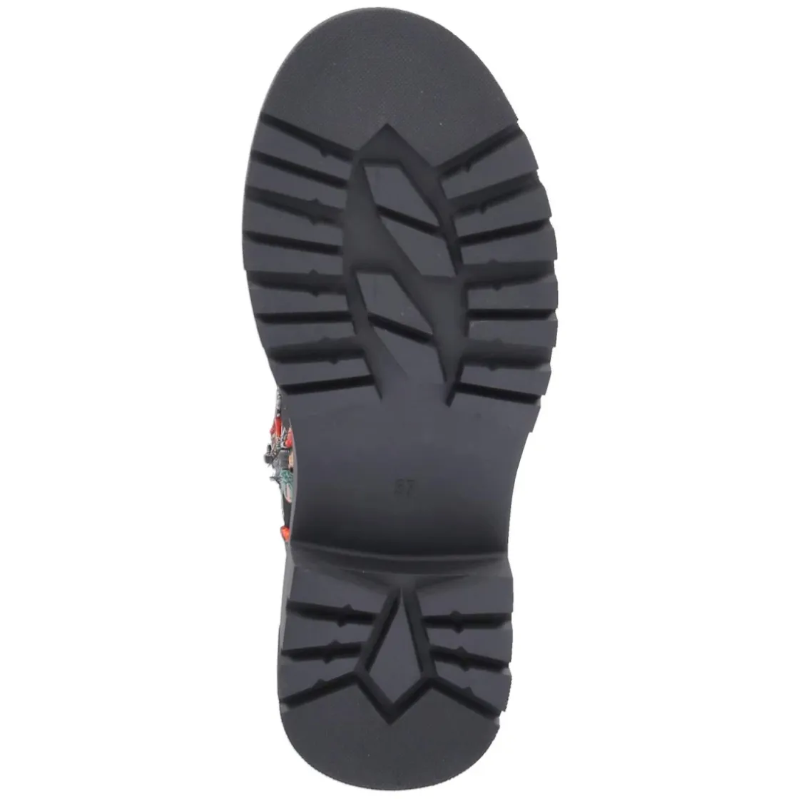La Strada zeigt mit diesen Damen-Boots eine elegante Fusion aus Komfort und Statement-Design. Schwarzes Textil mit samtiger Oberfläche bildet die Bühne für ein barockes Blumenmuster mit feinen goldenen Details, das der runden Silhouette edlen Glanz verleiht. Der 4 cm hohe Blockabsatz sorgt für Stabilität im Alltag, während Schnürsenkel und Reißverschluss ein unkompliziertes An- und Ausziehen ermöglichen. Eine Anziehlasche unterstützt zusätzlich. Innen verwöhnt leichtes Futter an kühlen Tagen, das Memory Foam Fußbett passt sich weich an und die flexible, rutschfeste Profilsohle bietet sicheren Halt. Mit Decksohle aus Textil, normaler Passform und dem Versprechen für den perfekten Auftritt richtet sich dieses Modell an Erwachsene, die Ausdruck und Bequemlichkeit verbinden wollen. Modetipp: Zu Midikleid in Uni-Schwarz und strukturiertem Wollmantel entsteht ein stilvoller Look mit subtiler Opulenz.