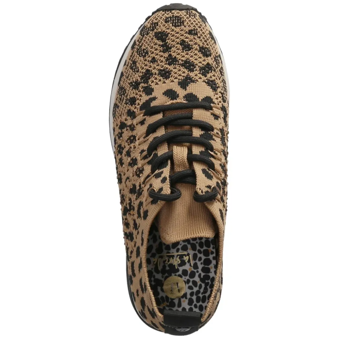 Der Low Sneaker von La Strada zeigt in warmem Braun, wie moderner Chic und Komfort zusammenspielen. Das textile Obermaterial mit elegant schimmernder Oberfläche bringt subtile Raffinesse in den Alltagslook, während die runde Schuhspitze und die flexible Laufsohle für ein angenehmes Tragegefühl sorgen. Eine Schnürung mit Animal-Design und beigefarbene Schmucksteine setzen funkelnde Akzente, markentypische Details runden das Design ab. Die verstärkte Ferse und die Anziehlasche geben Stabilität und erleichtern den Einstieg. Innen überzeugt ein gepolstertes, herausnehmbares Wechselfußbett sowie eine weiche Decksohle aus Textil. Der Sneaker fällt normal aus und ist damit unkompliziert kombinierbar für jeden Tag. Modetipp: Zu cremefarbenen Wide-Leg-Jeans und einem grob gestrickten Pullover tragen, dazu goldfarbener Schmuck für einen eleganten Ton-in-Ton-Look.