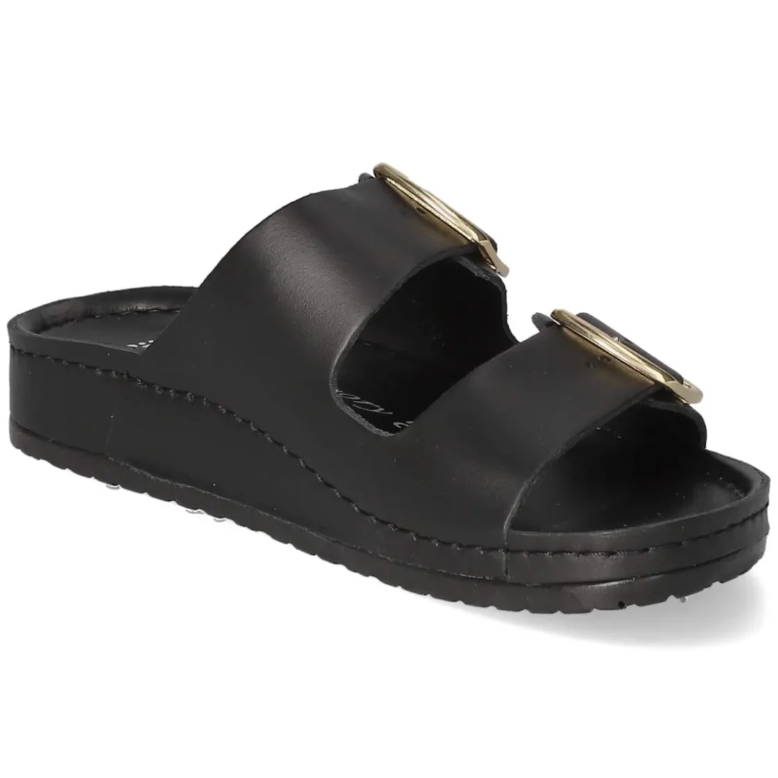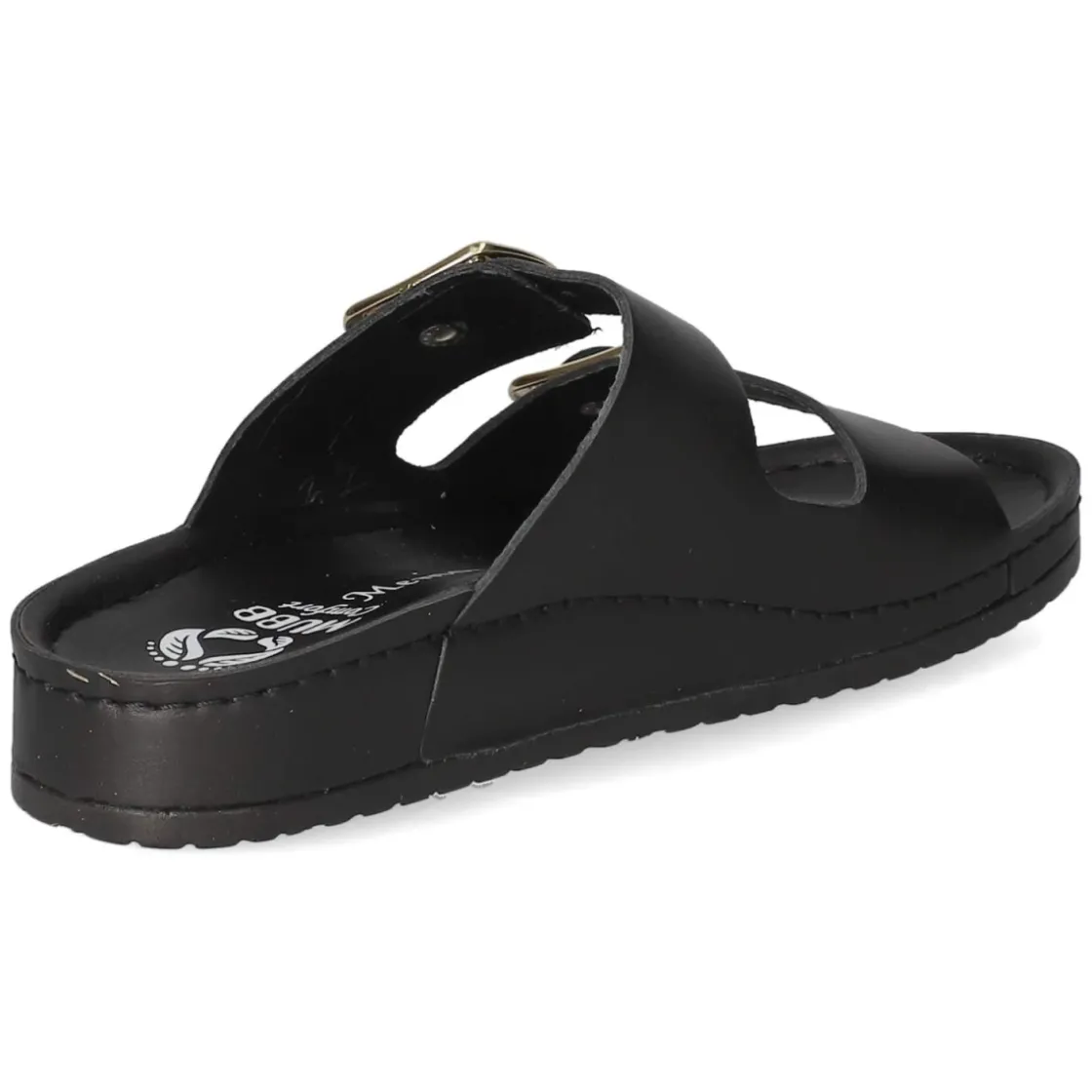 Diese Damen-Pantoletten von Mubb verbinden langlebiges Echtleder und puristische Eleganz. Schwarzes Glattleder zeigt sich mit subtilen Markendetails, die goldenen Akzente und die sicheren, verstellbaren Schnallen setzen einen edlen Kontrast. Die offene Schuhspitze und die hautfreundliche Lederdecksohle sorgen zusammen mit dem vorgeformten Fußbett für ein angenehmes Klima und entspannten Halt – den ganzen Tag. Eine flexible Laufsohle stützt den natürlichen Abrollvorgang und macht die Pantolette zum verlässlichen Begleiter für Stadtbummel, Office und Reise. Die Passform fällt normal aus und bietet angenehmen Spielraum, ohne an Präzision zu verlieren. Qualität und Komfort treffen hier auf zeitloses Design, das sich mühelos kombinieren lässt. Modetipp: Zu Cropped-Jeans und einer lockeren Bluse wirken die schwarzen Pantoletten mit Goldakzenten besonders modern.