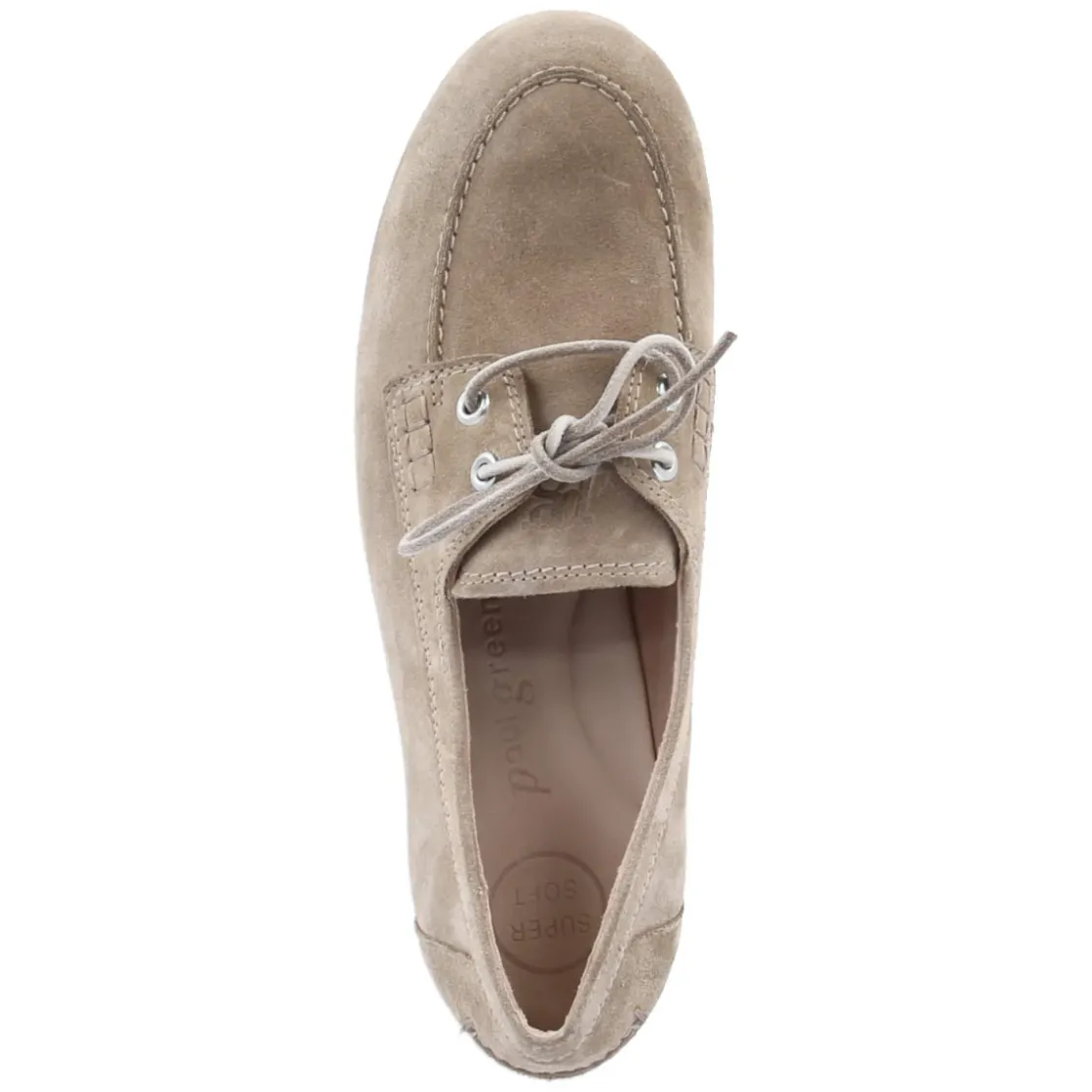 Der Damen-Halbschuh von Paul Green verbindet zeitlose Schlichtheit mit hochwertiger Verarbeitung. Robustes Echtleder in softem beigem Rauleder sorgt für einen natürlichen Look, während Lederfutter und eine leicht gepolsterte Lederdecksohle angenehmen Tragekomfort bieten. Die runde Spitze und die Schnürung sichern eine bequeme, individuell regulierbare Passform; die Größe fällt normal aus. Dank geringem Gewicht und verstärkter Ferse bleibt der Fuß auch an langen Tagen gut geführt. Die flexible, griffige und rutschhemmende Laufsohle gibt zuverlässigen Halt auf verschiedensten Untergründen. Ein vielseitiger Begleiter, der Casual-Styles ebenso abrundet wie smarte Office-Outfits. Modetipp: Ton-in-Ton mit Sand- oder Creme-Nuancen und verkürzter Straight-Jeans entsteht ein ruhiger, moderner City-Look.