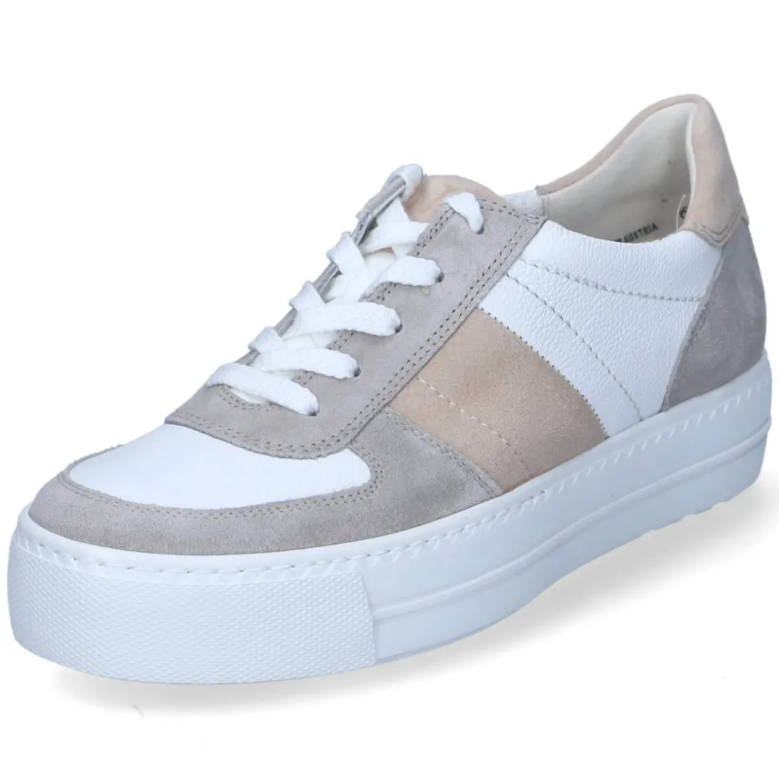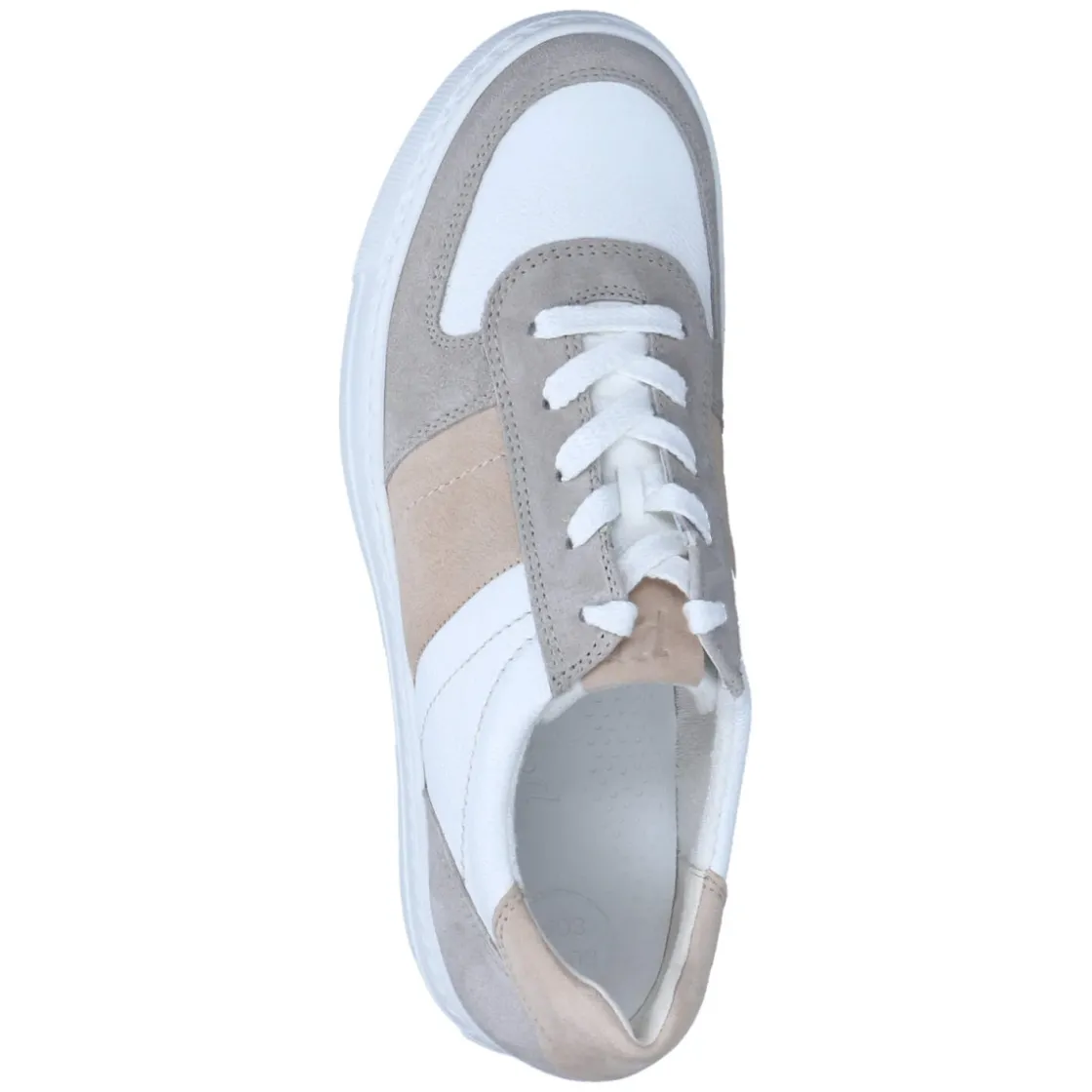 Der Low Sneaker von Paul Green vereint einen modernen Material-Mix aus Leder und Textil mit zeitloser Silhouette in strahlendem Weiß. Die runde Schuhspitze und die dezenten Ziernähte verleihen ein cleanes Finish, während der verstärkte Zehen- und Fersenbereich zuverlässige Formstabilität bietet. Ein leichtes Leder-Textilfutter und das gepolsterte Lederfußbett sorgen für angenehmen Tragekomfort im Alltag. Dank Schnürsenkeln lässt sich die Passform individuell justieren; die rutschhemmende Cupsohle gewährleistet sicheren Halt auf verschiedenen Untergründen. Der Schuh fällt normal aus und eignet sich ideal für Damen, die einen vielseitigen Begleiter suchen. Modetipp: Zu verkürzter Straight-Jeans und einem Trenchcoat wirkt der Sneaker besonders frisch, alternativ bringt ein feiner Stricksocke in Ton-in-Ton ein reduziertes, stilvolles Finish.