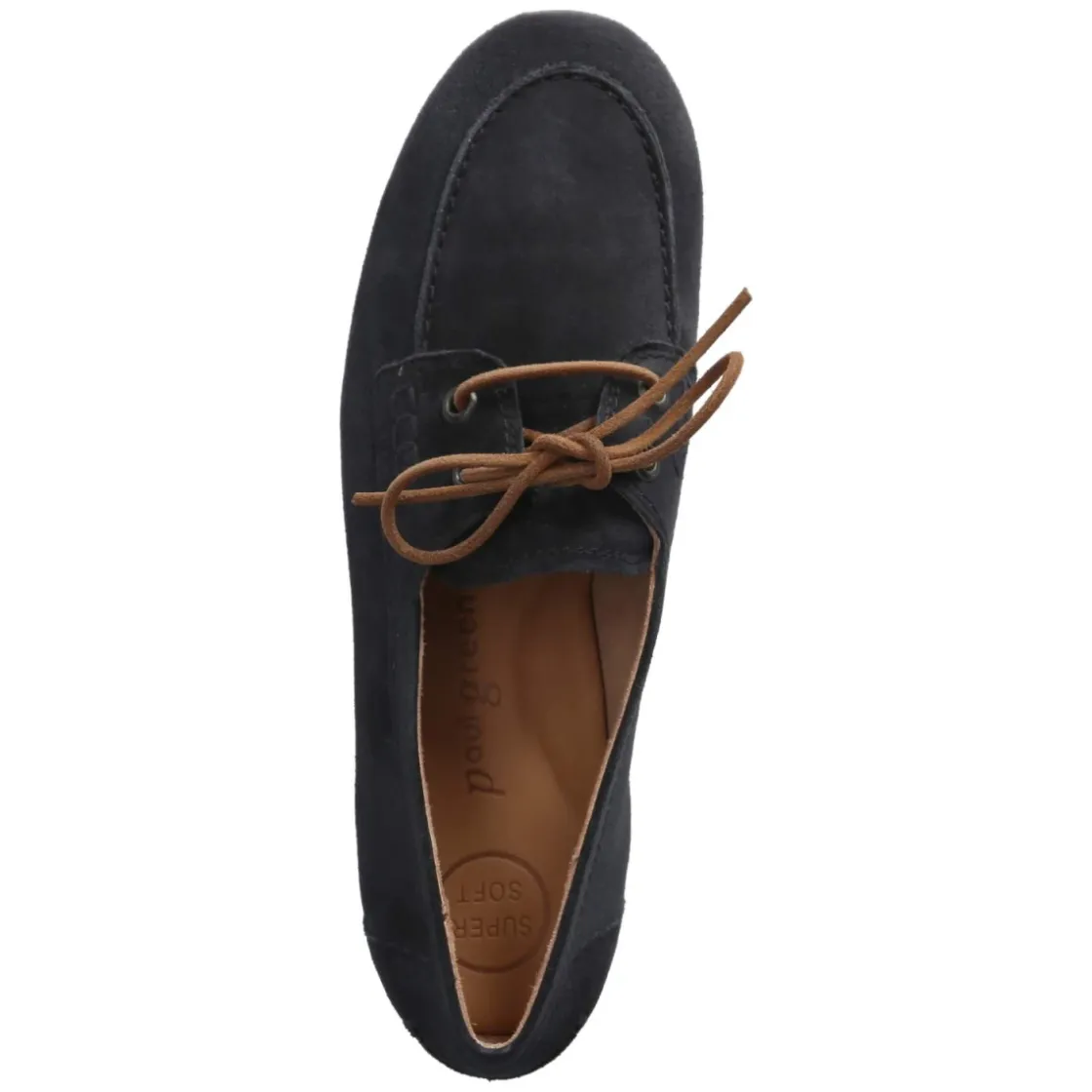 Der blaue Damen-Slipper von Paul Green verbindet zeitloses Understatement mit hochwertiger Verarbeitung. Langlebiges Echtleder in samtigem Rauleder-Finish umschmeichelt den Fuß, während die hautfreundliche Lederdecksohle und das weich gepolsterte Lederfußbett ein angenehmes Tragegefühl über den ganzen Tag liefern. Die runde Schuhspitze und die dezente Wulstnaht sorgen für eine elegante Linienführung, goldfarbene Akzente setzen edle Highlights. Mit der Schnürung lässt sich die Passform präzise anpassen; die verstärkte Ferse bietet zusätzliche Stabilität. Innenmaterial aus Leder unterstützt ein ausgeglichenes Fußklima, die flexible, rutschfeste Laufsohle gibt sicheren Halt. Der Schnitt fällt normal aus und überzeugt mit unkomplizierter Größe. Modetipp: Zu Cropped-Chino in Ecru und gestreiftem Feinstrick entsteht ein moderner, maritimer Look, abgerundet durch zarten Goldschmuck.