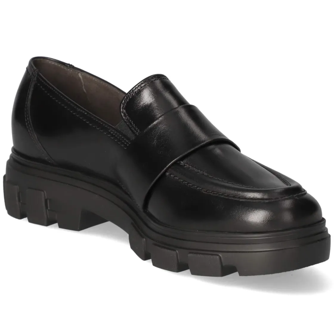 Zeitlos und souverän präsentiert sich dieser Damen-Slipper von Paul Green in edlem Schwarz. Glattes Oberleder und eine runde Spitze verleihen dem Modell eine cleane Silhouette, während der 3 cm hohe Blockabsatz für angenehme Höhe sorgt. Der unkomplizierte Einstieg gelingt dank zweier Elastikeinsätze über dem Spann und einem breiten Zierriemen mit kleinem Elastikeinsatz mühelos, die verstärkte Ferse erhöht die Formstabilität. Innen umschmeichelt atmungsaktives Echtleder den Fuß, eine hautfreundliche, gepolsterte Lederdecksohle sorgt für Komfort im Alltag. Die flexible, rutschfeste Laufsohle bietet verlässlichen Halt, das Modell fällt größengetreu aus. Dezente Wulstnähte runden das elegante Erscheinungsbild ab. Modetipp: Besonders stilsicher wirkt der Slipper zu einer verkürzten Anzughose und einem feinen Stricktop; für einen City-Look ergänzt ein Oversize-Blazer die zurückhaltende Eleganz perfekt.