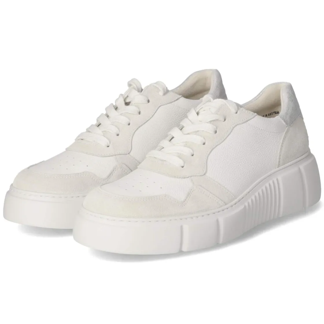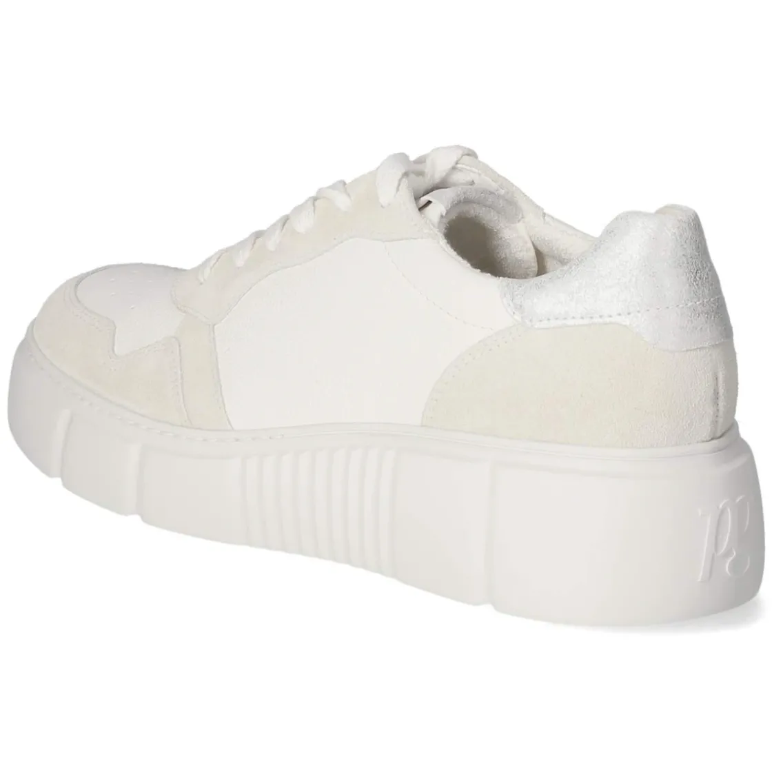 Der weiße Sneaker von Paul Green verbindet sportliche Leichtigkeit mit hochwertigem Komfort. Atmungsaktives Echtleder und ein gelochtes Schuhdeck sorgen für ein ausgeglichenes Fußklima, während der bequem gepolsterte Einstieg und die rund geformte Spitze angenehmen Halt vermitteln. Die Schnürung erlaubt individuelle Anpassung, der verstärkte Zehen- und Fersenbereich erhöht die Formstabilität im Alltag. Eine gepolsterte, textile Wechseldecksohle lässt sich für eigene Einlagen herausnehmen. Die flexible, rutschhemmende Laufsohle unterstützt natürliche Abrollbewegungen auf verschiedenen Untergründen. Dezente Akzente in Beige und Silber geben dem klaren Weiß eine edle Note. Der Schnitt fällt normal aus und richtet sich an Damen, die zeitlose Sneakers schätzen. Modetipp: Zu Cropped-Jeans und einem hellen Stricktop entsteht ein cleaner City-Look; ein silbernes Accessoire greift die Metallic-Details stimmig auf.
