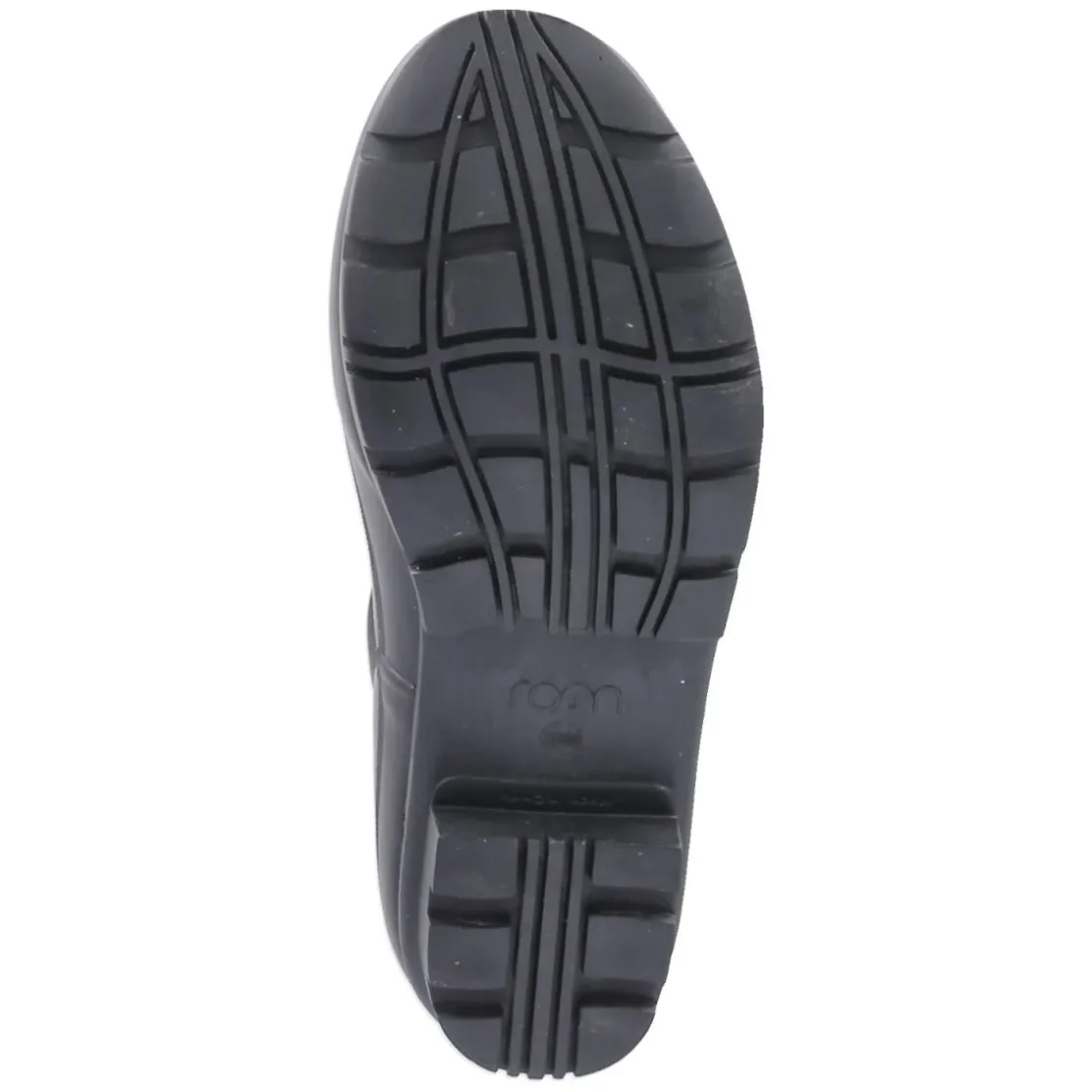 Der Chelsea Boot BEE von Rajn in klassischem Schwarz verbindet urbanes Design mit wettertauglicher Funktion. Das Obermaterial aus Gummi hält Feuchtigkeit zuverlässig ab, die seitlichen Elastikeinsätze und die Anziehlasche sorgen für einen unkomplizierten Einstieg. Mit rund zulaufender Spitze, blockigem 3 cm Absatz und verstärktem Fußrahmen steht das Modell für Stabilität im Alltag. Das gepolsterte, herausnehmbare Wechselfußbett auf textiler Decksohle bietet angenehme Dämpfung und lässt sich bei Bedarf gegen eigene Einlagen tauschen. Reflektierende Details inklusive Fersenstreifen erhöhen die Sichtbarkeit bei Dämmerung, während die flexible, rutschhemmende Profilsohle sicheren Halt gibt. Der dezente Bienenprint setzt einen charaktervollen Akzent, der das moderne Erscheinungsbild abrundet. Modetipp: In Kombination mit gerader Cropped-Jeans und einem oversized Wollmantel entsteht ein cleaner City-Look.