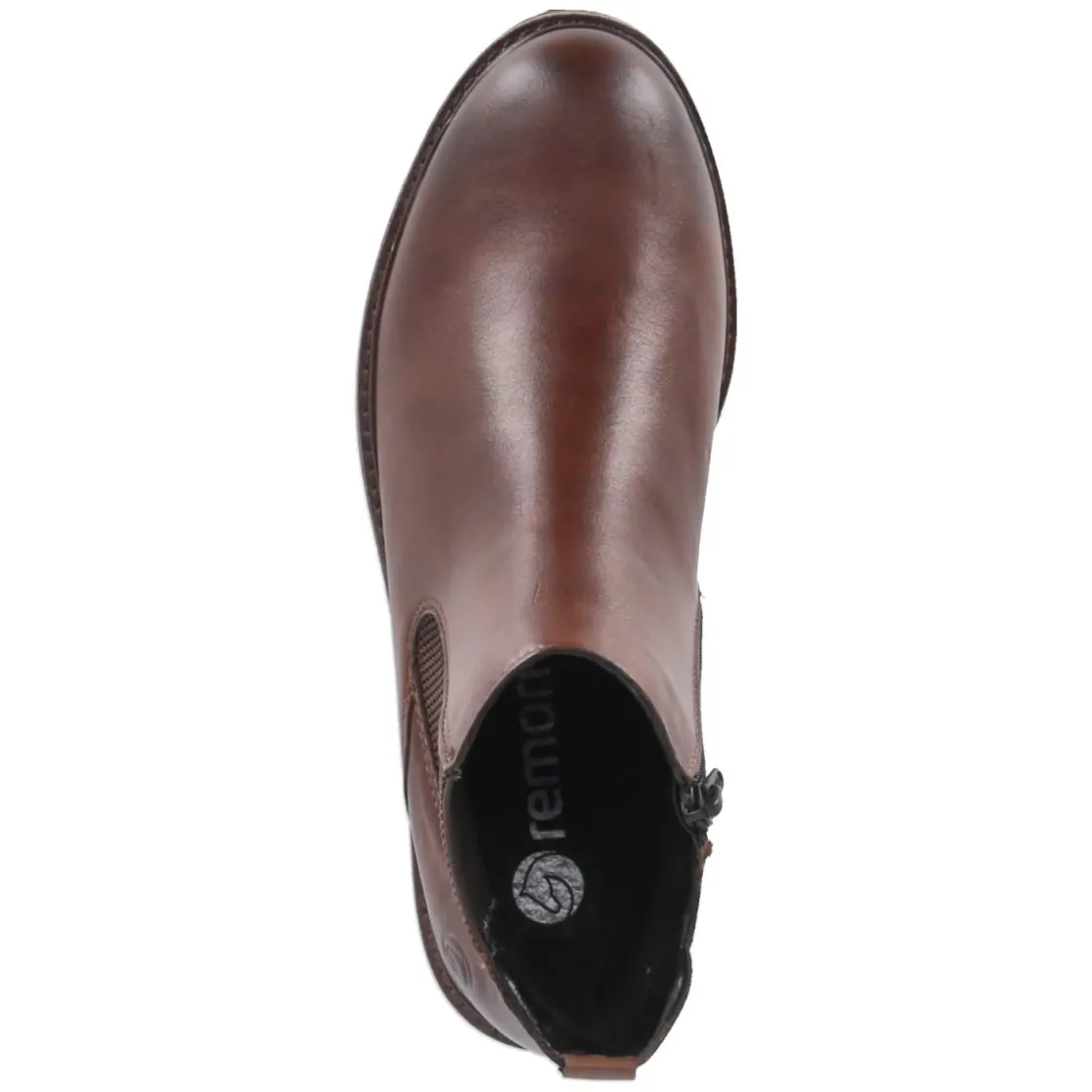 Der Remonte Chelsea Boot in warmem Braun vereint klassisches Design mit moderner Funktion. Das glatt verarbeitete Leder trifft auf eine runde Schuhspitze und einen 3 cm hohen Blockabsatz, der einen stabilen Auftritt bietet. Ein seitlicher Reißverschluss erleichtert den Einstieg, während der praktische Elastikeinsatz den ikonischen Chelsea-Look komplettiert. Das wasserfeste Obermaterial wirkt zugleich wasserabweisend, sodass kurze Regenschauer gelassen bleiben. Leichtes Futter wärmt an kühlen Tagen, die textile Decksohle sorgt für angenehmes Fußklima. Das Wechselfußbett erlaubt den Einsatz eigener Einlagen, die rutschfeste Profilsohle gibt Halt auf glatteren Untergründen. Der Schnitt fällt normal aus und macht den Boot alltagstauglich. Modetipp: Zu Straight-Leg-Jeans, Kaschmirpullover und langem Wollmantel entsteht ein mühelos eleganter City-Look.
