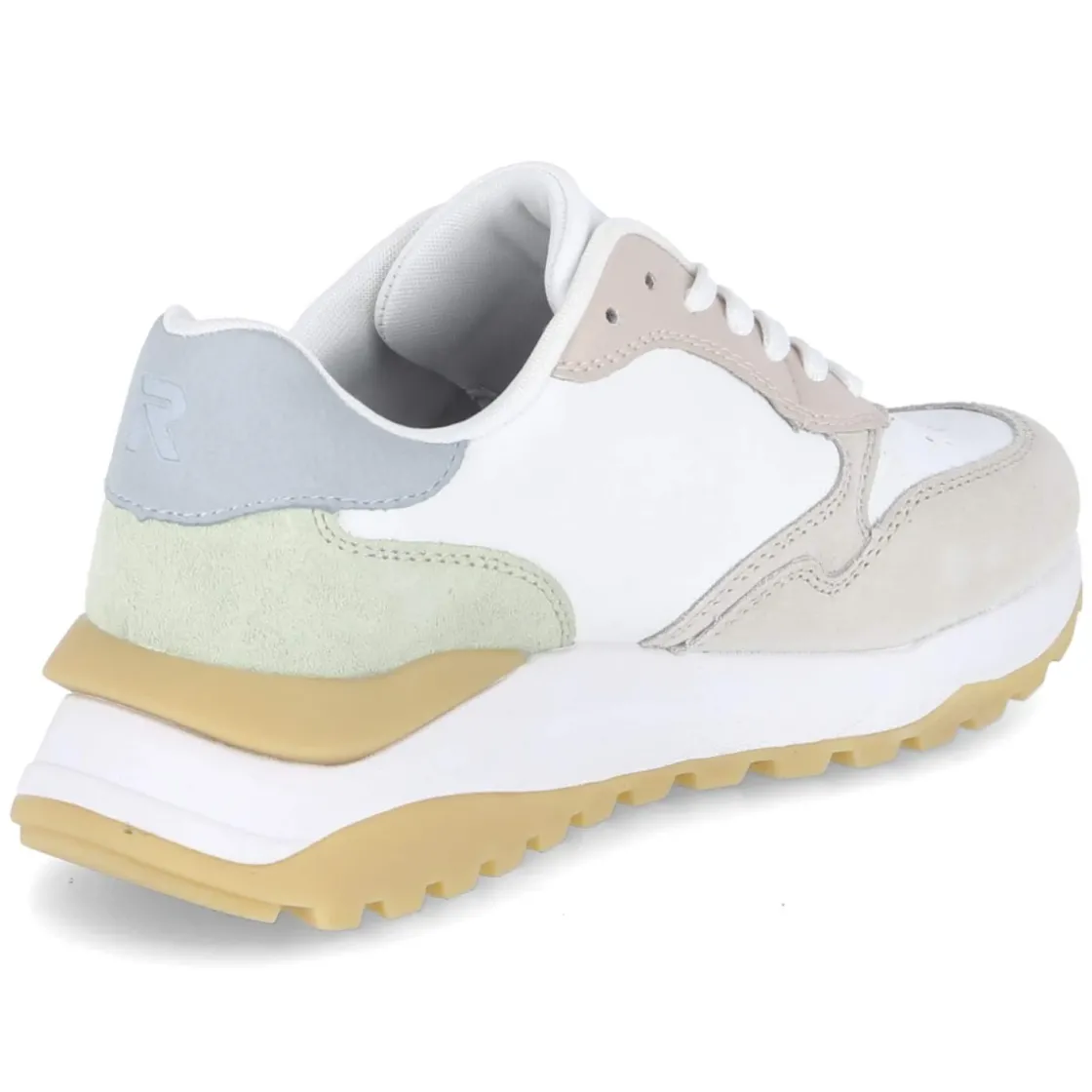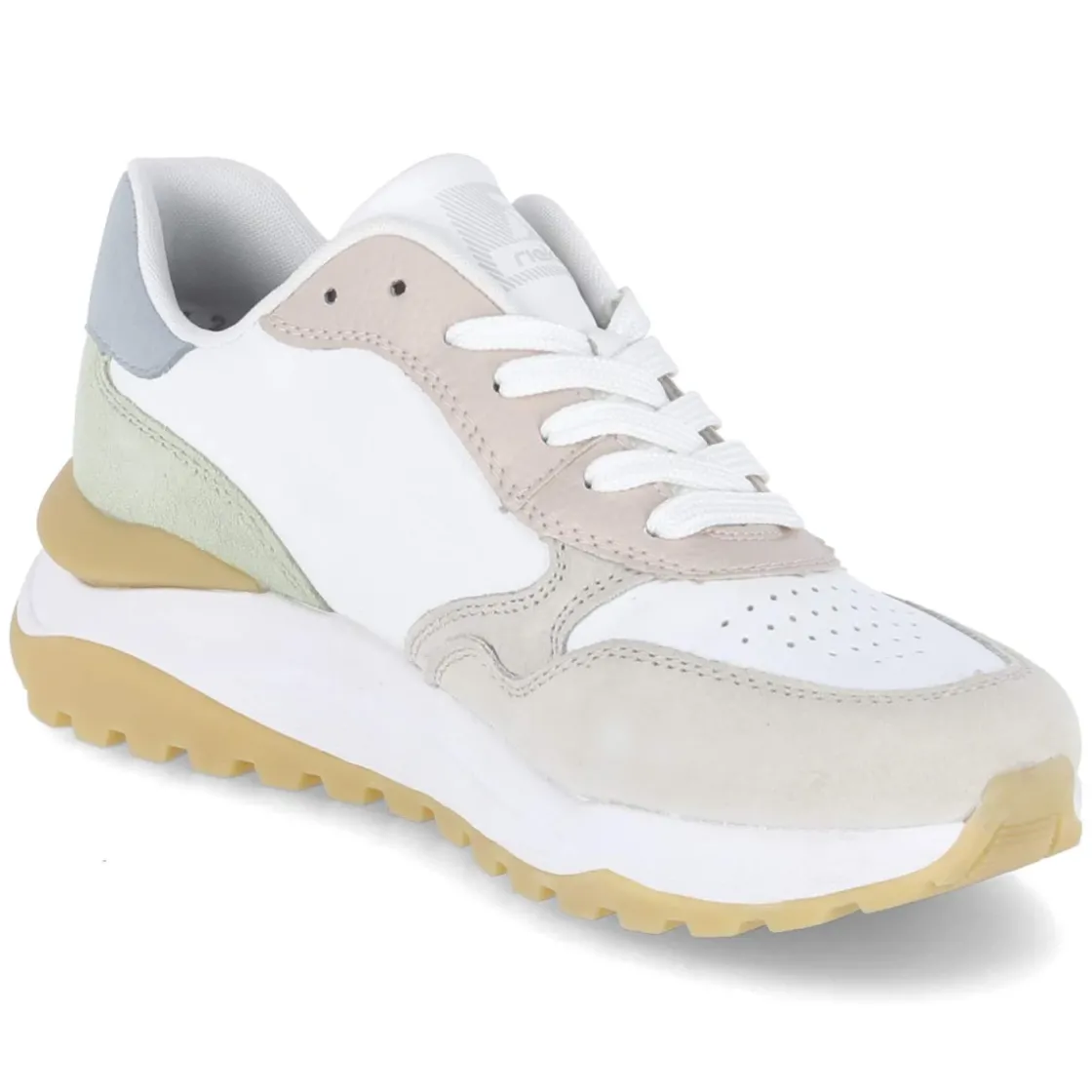 Der Low Sneaker von Rieker in strahlendem Weiß verbindet urbanen Charme mit funktionalen Details. Ein robuster Material-Mix aus Leder und Synthetik, die runde Schuhspitze sowie der verstärkte Zehen- und Fersenbereich sorgen für langlebige Stabilität. Schuhdeck und Seiten sind dezent gelocht und fördern ein angenehm ausgeglichenes Fußklima, während der gepolsterte Einstieg und die flexible, rutschhemmende Laufsohle für sanften Auftritt und sicheren Halt stehen. Das komfortable, gepolsterte Wechselfußbett aus Textil kann bei Bedarf durch eigene Einlagen ersetzt werden. Farbig akzentuierte Pastelltöne und das dezente Branding verleihen dem cleanen Look vielseitige Kombinationsmöglichkeiten; die Passform fällt normal aus. Modetipp: Zu Cropped-Jeans und einem leichten Strick in Naturtönen wirkt der Sneaker modern und feminin; mit einem Blazer entsteht mühelos ein smarter Casual-Look.