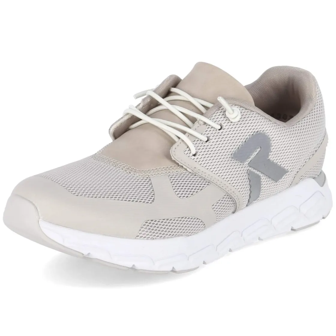 Der Rieker Low Sneaker in Beige verbindet lässige Optik mit durchdachtem Komfort. Der moderne Material-Mix aus Textil und Synthetik schmiegt sich angenehm an, die runde Schuhspitze bietet Zehenfreiheit. Ein gepolsterter Einstieg sowie der verstärkte Zehen- und Fersenbereich erhöhen Halt und Langlebigkeit. Das herausnehmbare, weich gepolsterte Wechselfußbett mit textilem Bezug sorgt für ein angenehm federndes Laufgefühl und eignet sich für individuelle Einlagen. Die flexible, rutschhemmende Laufsohle unterstützt sicheren Tritt im Alltag, während das seitliche Reflektor-Logo dezente Sichtbarkeit bringt. Dank klassischer Schnürung mit Elastikband-Optik sitzt der Schuh unkompliziert und fällt größengetreu aus. Modetipp: Ton-in-Ton mit sandfarbenen Chinos und einem leichten Stricktop kombinieren – dazu eine feine Schultertasche in Nude für einen harmonischen City-Look.