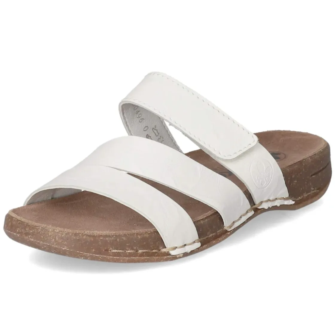Die weißen Pantoletten von Rieker verbinden zeitlosen Minimalismus mit durchdachtem Komfort. Das Obermaterial aus hochwertigem Glattleder präsentiert sich strapazierfähig und anschmiegsam, während die Lederdecksohle zusammen mit dem weich gepolsterten Fußbett für ein angenehmes Trittgefühl sorgt. Der offene Zehenbereich lässt Luft zirkulieren, ideal für warme Tage, und der verstellbare Klettverschluss ermöglicht einen sicheren Sitz ohne Druckstellen. Eine flexible, griffig profilierte Laufsohle fördert natürliche Abrollbewegungen und verleiht Stabilität auf verschiedensten Untergründen. Dezente Markendetails runden den Look ab. Die Passform fällt normal aus und eignet sich sowohl für den Alltag als auch für Urlaubstage. Modetipp: Zu leichten Leinenhosen und einem monochromen Outfit kombinieren, um die frische Weißnuance elegant hervorzuheben.
