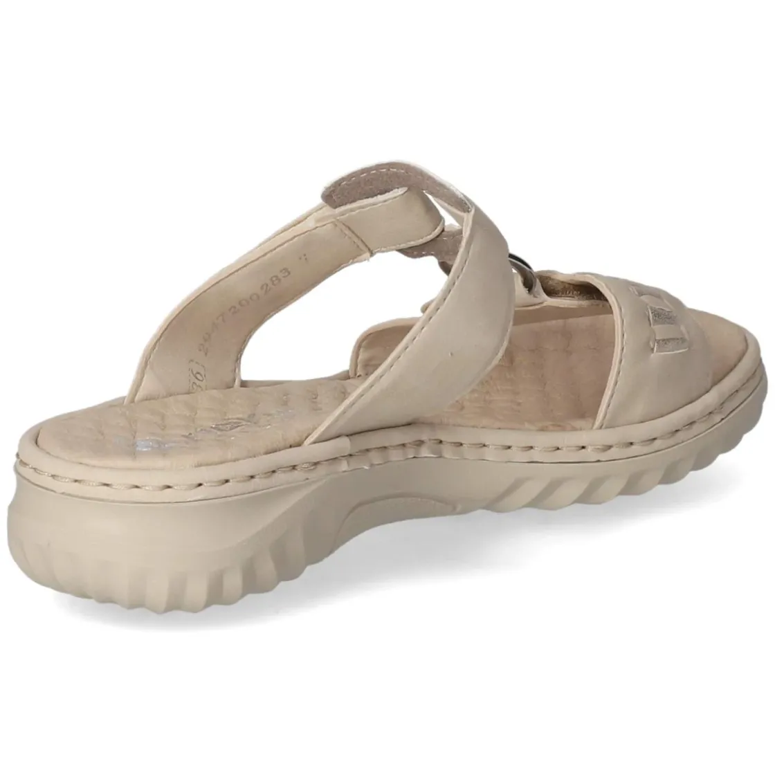 Diese Pantoletten von Rieker in sanftem Beige vereinen luftige Leichtigkeit mit verlässlichem Komfort. Das Obermaterial aus robuster Synthetik zeigt sich unempfindlich im Alltag, während die offene Schuhspitze für angenehme Belüftung sorgt. Ein weich gepolstertes Fußbett schmiegt sich an die Fußsohle und entlastet bei jedem Schritt, ergänzt durch eine flexible Laufsohle, die Bewegungen geschmeidig mitgeht. Dank der praktischen Klettverschlüsse gelingt das Anpassen mühelos und die Passform bleibt stabil, dazu fällt das Modell normal aus. Ob für Besorgungen in der Stadt oder entspannte Sommermomente, diese Pantoletten setzen auf unkomplizierte Funktion und zurückhaltende Eleganz. Modetipp: Zu einer fließenden Leinenhose und einem ärmellosen Top in Creme entsteht ein harmonischer Ton-in-Ton-Look; eine Basttasche und zarte Gold-Details runden das Ensemble stilvoll ab.