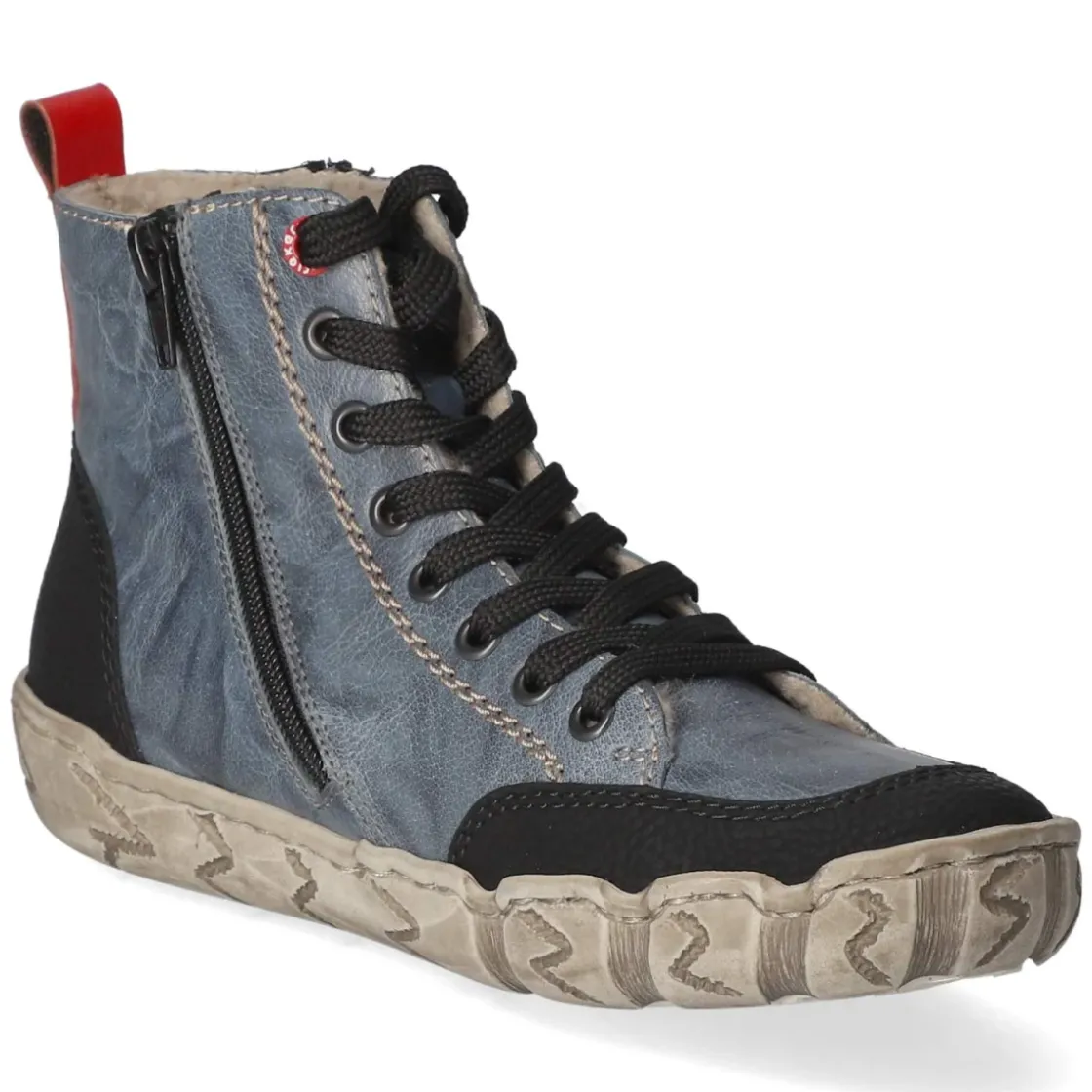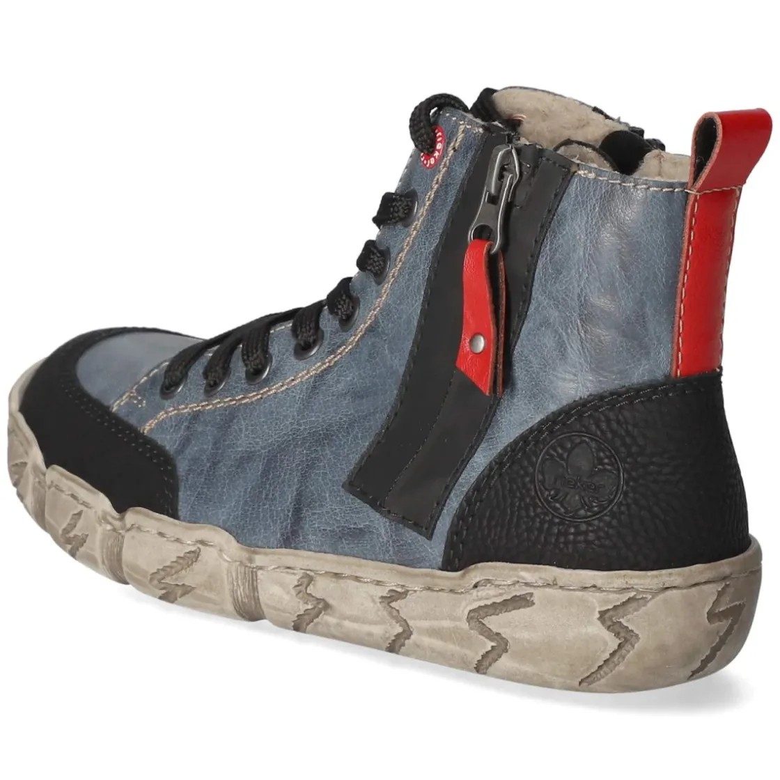 Urbaner Komfort trifft auf unkomplizierte Alltagstauglichkeit: Der Damen-Schnürboot von Rieker in Blau setzt mit einem modernen Material-Mix aus Leder und Synthetik ein stilbewusstes Statement. Warmfutter umschließt den Fuß angenehm, während die textile Decksohle und das gepolsterte Fußbett langen Tagen entspannt begegnen. Die flexible, griffige Laufsohle sorgt für Halt auf wechselnden Untergründen und macht den Boot zum idealen Begleiter beim Bummeln durch die Stadt. Rund gearbeitete Schuhspitzen, verstärkter Zehen- und Fersenbereich sowie Anziehlasche erhöhen den Tragekomfort. Schnürsenkel in Kombination mit seitlichem Reißverschluss erleichtern den Einstieg und erlauben eine präzise Anpassung. Rote und schwarze Akzente setzen dynamische Kontraste. Fällt normal aus. Modetipp: Zu lockerer Mom-Jeans, meliertem Strickpullover und einem Oversize-Wollmantel wirkt der Boot besonders lässig.