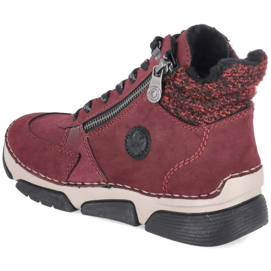 Dieser Damen-Schnürstiefel von Rieker setzt ein kraftvolles Statement in leuchtendem Rot und verbindet sportliche Optik mit wintertauglichem Komfort. Das Obermaterial aus Kunstleder zeigt sich besonders pflegeleicht, während Warmfutter mit kuscheligem Teddyfutter und gepolsterter Einstieg behagliche Wärme an kühlen Tagen bieten. Dank rutschhemmender Laufsohle ist auf nassem Asphalt und glatten Wegen verlässlicher Halt gegeben. Schnürsenkel erlauben die individuelle Anpassung, der seitliche Reißverschluss erleichtert das An- und Ausziehen. Die runde Schuhspitze schafft Zehenfreiheit, der verstärkte Zehen- und Fersenbereich erhöht die Robustheit im Alltag. Die Passform fällt normal aus und macht das Modell zum unkomplizierten Begleiter für Erwachsene. Modetipp: Das kräftige Rot entfaltet besondere Wirkung zu dunklen Skinny-Jeans, Oversize-Strick und einem klassisch schwarzen Wollmantel – für einen urbanen Look mit sportiver Note.
