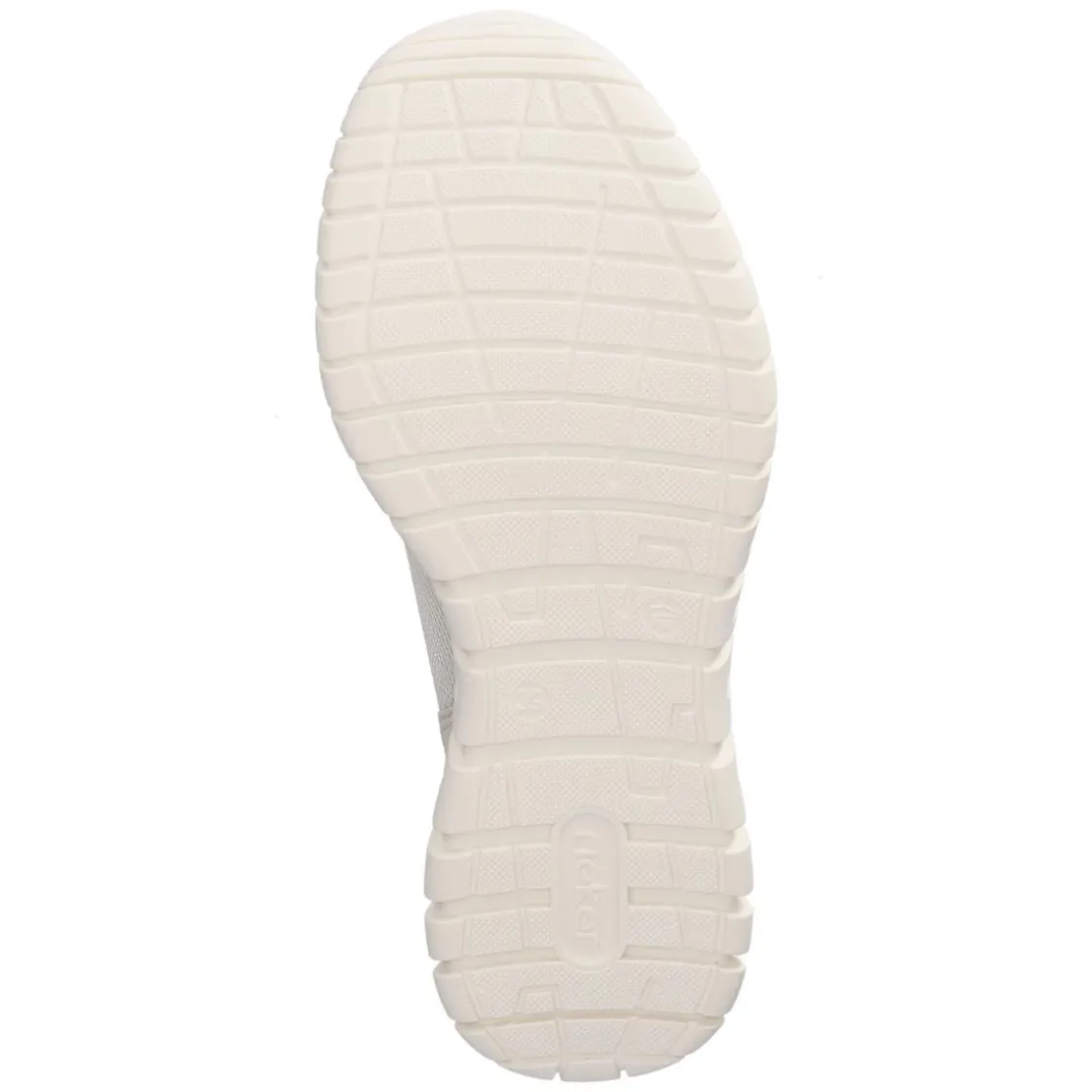 Der beige Slip-on-Sneaker von Rieker verbindet mühelose Bequemlichkeit mit sportlicher Eleganz. Der leichte Textil-Synthetik-Mix mit luftigen Mesh-Elementen sorgt für ein angenehmes Fußklima, während die runde Schuhspitze und die textile Decksohle den Tragekomfort abrunden. Elastikschnürung und Elastikband geben flexiblen Halt, zwei Anziehlaschen erleichtern den Einstieg, und der verstärkte Zehen- sowie Fersenbereich bietet zusätzliche Stabilität. Das weich gepolsterte Fußbett federt jeden Schritt, die flexible, rutschhemmende Laufsohle begleitet sicher durch den Tag. Ziernähte und dezente Markenlogos setzen zurückhaltende Akzente. Die Passform fällt normal aus und macht den Sneaker zum unkomplizierten Allrounder für den Alltag. Modetipp: Ton-in-Ton mit beiger Chino und cremefarbenem Stricktop entsteht ein edler, ruhiger Look, den ein Trenchcoat stilvoll komplettiert.