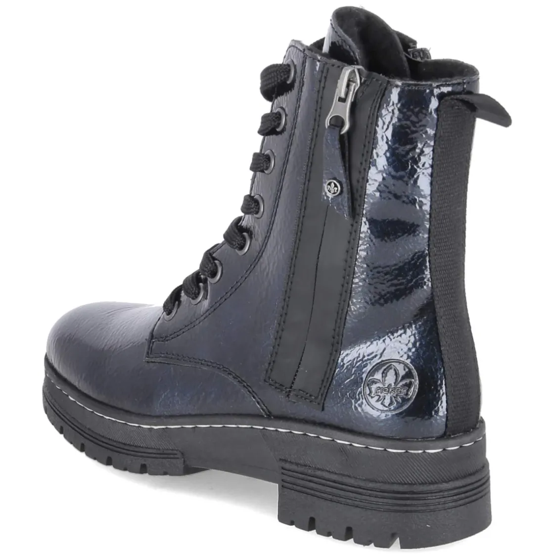 Winterboots von Rieker vereinen stilvolle Funktion für kalte Tage: Die elegante Lackoptik in dunklem Blau setzt ein edles Finish, das je nach Licht fast schwarz wirkt und vielfältig kombiniert werden kann. Obermaterial aus Synthetik, Warmfutter innen und eine textile Decksohle sorgen zusammen mit gepolstertem Fußbett für behagliche Wärme. Dank Wechselfußbett lassen sich eigene Einlagen nutzen. Der 4 cm hohe Blockabsatz und die rutschhemmende Laufsohle geben sicheren Halt, die runde Spitze und das relaxtes Leichtgewicht garantieren entspanntes Gehen. Schnürsenkel und seitlicher Reißverschluss erleichtern den Einstieg, ein außen gesetzter Zierreißverschluss, verstärkter Fersenbereich und Anziehlasche runden das Design ab. Der Schnitt fällt normal aus und passt zu unterschiedlichsten Outfits. Modetipp: Mit Wollmantel, Straight-Jeans und grobem Strickschal entsteht ein moderner City-Look, alternativ wirkt ein monochromes Schwarz-Outfit besonders harmonisch.
