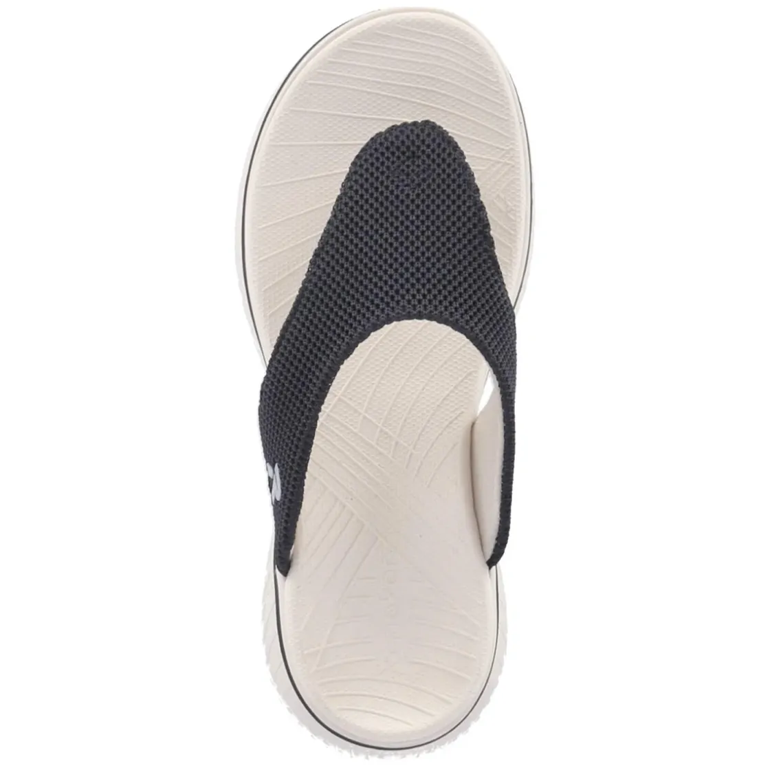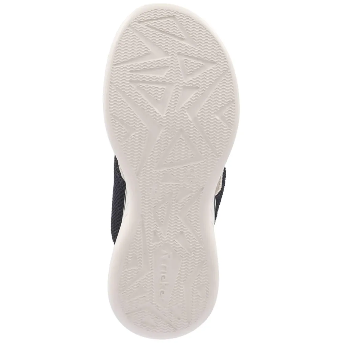 Der Rieker Zehentrenner in Dunkelblau überzeugt mit sportlichem Design und dezenter Feinstrickoptik, die je nach Licht fast Schwarz wirken kann. Das robuste Textilobermaterial sorgt für langlebige Alltagstauglichkeit, während die offene Schuhspitze und der Verschluss ohne Schnallen den sommerlichen Charakter unterstreichen. Ein gepolstertes Fußbett mit Decksohle aus Synthetik bietet weichen Auftritt, das relaxtes Leichtgewicht unterstützt entspanntes Gehen auf langen Wegen. Seitlich setzt ein reflektierendes Logo einen modernen Akzent. Die Passform fällt normal aus und richtet sich an Damen, die einen unkomplizierten Begleiter für City, Strand und Freizeit suchen. Modetipp: Zu luftigen Culottes und einem schlichten Leinenshirt entsteht ein maritimer Look; eine Basttasche und zarter Silberschmuck greifen den kühlen Blauton elegant auf.