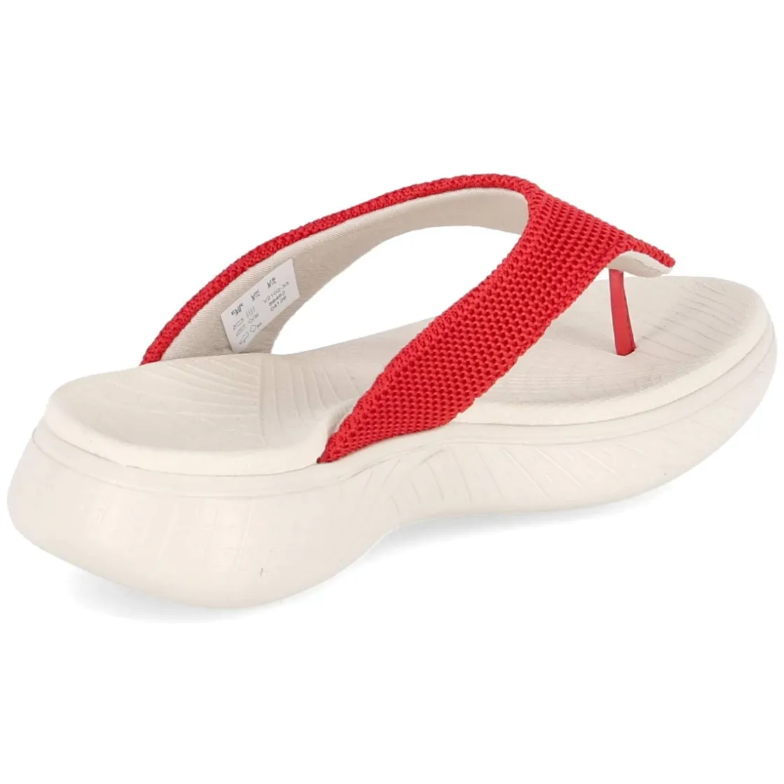 Als sommerlicher Zehentrenner verbindet dieses Rieker-Modell sportliche Leichtigkeit mit komfortorientierten Details. Das leichte Textilobermaterial in markanter Strick-Optik schmiegt sich angenehm an den Fuß, während die weiche Decksohle aus Synthetik bei jedem Schritt dämpft und für entspanntes Fußwohl sorgt. Die offene Schuhspitze und das Design ohne Verschluss ermöglichen unkompliziertes Hineinschlüpfen, ideal für spontane Wege in der Stadt oder an der Promenade. Ein reflektierendes, seitlich platziertes Logo setzt einen dynamischen Akzent und erhöht die Sichtbarkeit in der Dämmerung. Die leuchtende Rotnuance unterstreicht die sportliche Optik und macht den Look zum Statement für aktive Sommertage. Der Größenhinweis fällt normal aus und bietet verlässliche Passform für Damen. Dank des geringen Gewichts bleibt die Bewegung stets unbeschwert. Modetipp: Besonders modern wirkt der Zehentrenner zu weißen Wide-Leg-Jeans und einem gerippten Tanktop, ergänzt durch eine leichte Oversize-Leinenbluse.