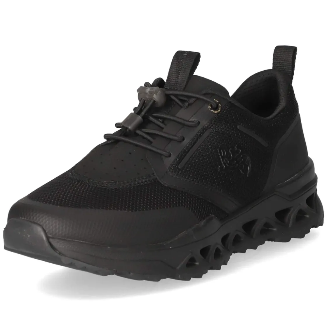 Der Low Sneaker von Salamander setzt in Schwarz auf klare Linien und hohen Tragekomfort. Der leichte Textil-Synthetik-Mix umschließt den Fuß angenehm, während Schnellverschluss und elastisches Band einen flexiblen, sicheren Sitz ermöglichen. Gepolsterter Einstieg und die sportliche Laufsohle mit Luftpolstern federn jeden Schritt, verstärkte Fersen- und Zehenpartien geben Stabilität. Dank runder Spitze und moderner Optik funktioniert das Design vom Büro bis zum Wochenende. Das Wechselfußbett bietet Raum für eigene Einlagen, die Passform fällt normal aus. Über die Anziehlasche gelingt das Hineinschlüpfen mühelos, die schwarze Farbgebung eröffnet zahlreiche Outfits. Modetipp: Ton-in-Ton mit schwarzer Anzughose und Stricktop oder mit kontrastierendem weißem Hemd für sportlich-smarte Übergänge.