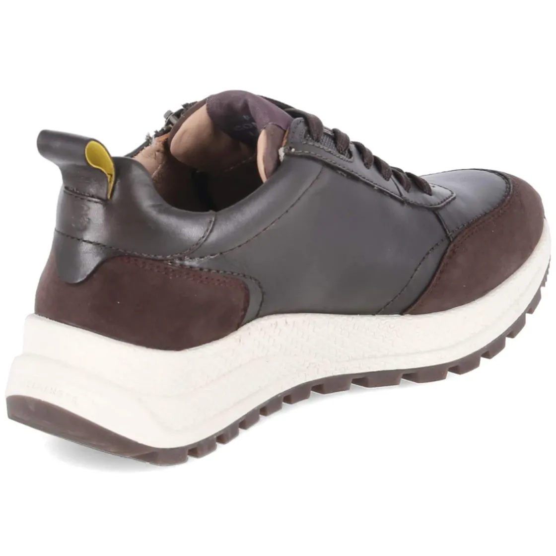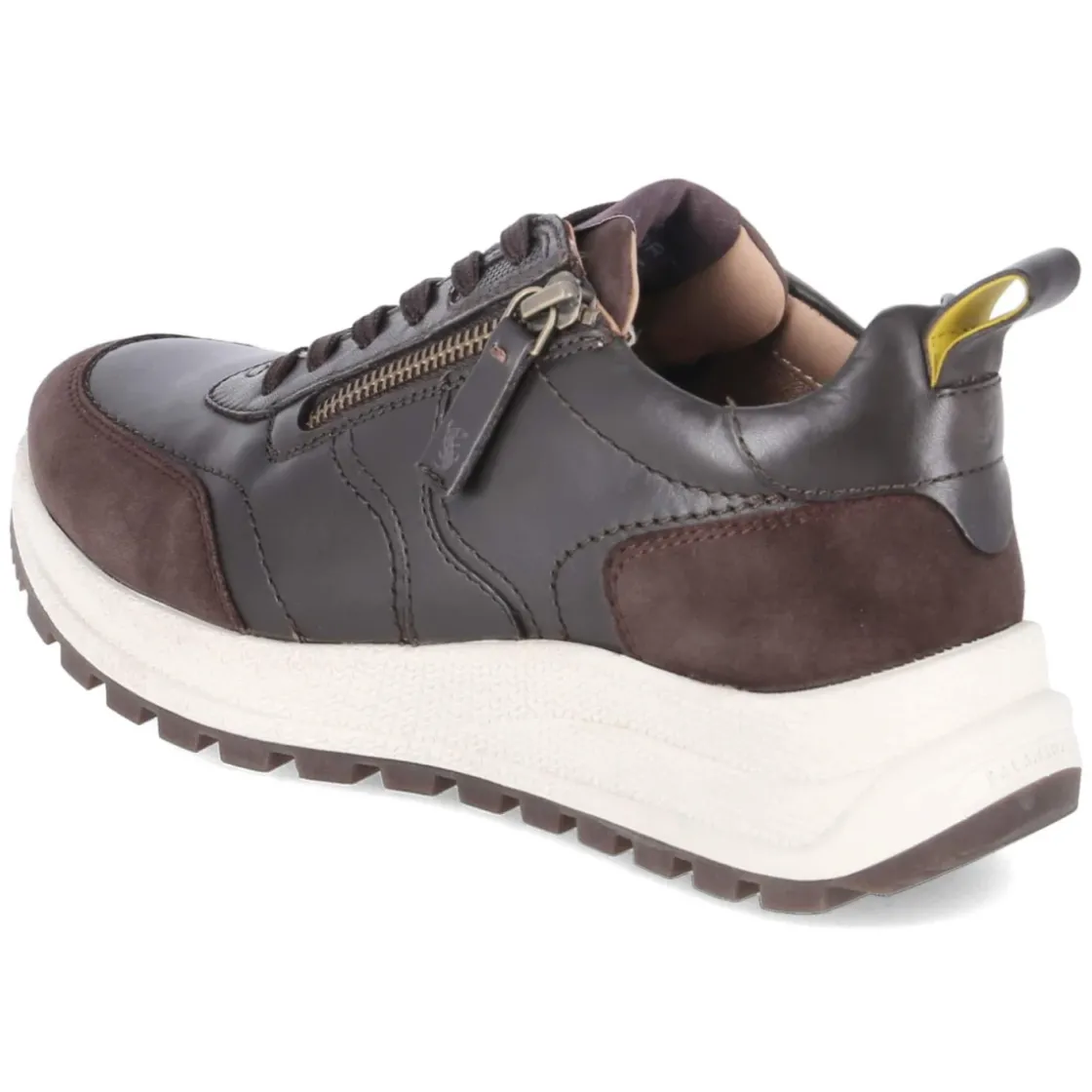 Der Low Sneaker von Salamander präsentiert sich als vielseitiger Begleiter mit edlem Obermaterial aus Glattleder in warmem Braun und dunkelbraunen Akzenten. Die runde Schuhspitze und der leicht gepolsterte Einstieg sorgen gemeinsam mit der ledernen Decksohle für angenehmes Tragegefühl über viele Stunden. Für stabilen Halt stehen ein verstärkter Fersen- und Zehenbereich bereit, während die flexible, rutschfeste Laufsohle zuverlässige Traktion im Alltag bietet. Der Mix aus Schnürsenkeln und seitlichem Reißverschluss erleichtert das An- und Ausziehen, unterstützt durch eine praktische Anziehlasche. Das komfortable Wechselfußbett bietet individuelle Anpassung und macht den Sneaker besonders bequem. Der Schnitt fällt normal aus und lässt sich dank der klaren Linien ausgezeichnet kombinieren. Modetipp: Zu Cropped-Jeans und Wollmantel entsteht ein moderner City-Look mit legerer Eleganz.