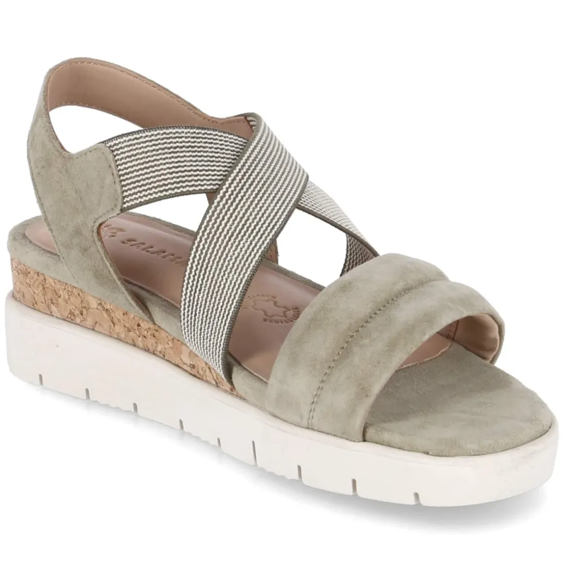 Die grünen Damen-Sandalen von Salamander vereinen zeitlose Eleganz mit entspanntem Komfort. Weiches Rauleder und eine runde Schuhspitze schmeicheln dem Fuß, während gekreuzte Elastikriemen über dem Spann für sicheren Halt sorgen und den Einstieg besonders unkompliziert machen. Ein gepolsterter vorderer Riemen mit feiner Quersteppung schützt empfindliche Partien, die hautfreundliche, gepolsterte Lederdecksohle unterstützt angenehm bei jedem Schritt. Langlebiges Echtleder und eine rutschhemmende Laufsohle mit leichtem Keil bringen Stabilität und ein dezentes Plus an Höhe. Die Passform fällt normal aus und eignet sich somit für den täglichen Einsatz vom Stadtbummel bis zur Gartenparty. Modetipp: Zu einem cremefarbenen Leinenkleid und filigranem Goldschmuck entsteht ein sommerlicher Look, der die grüne Nuance der Sandalen elegant hervorhebt.