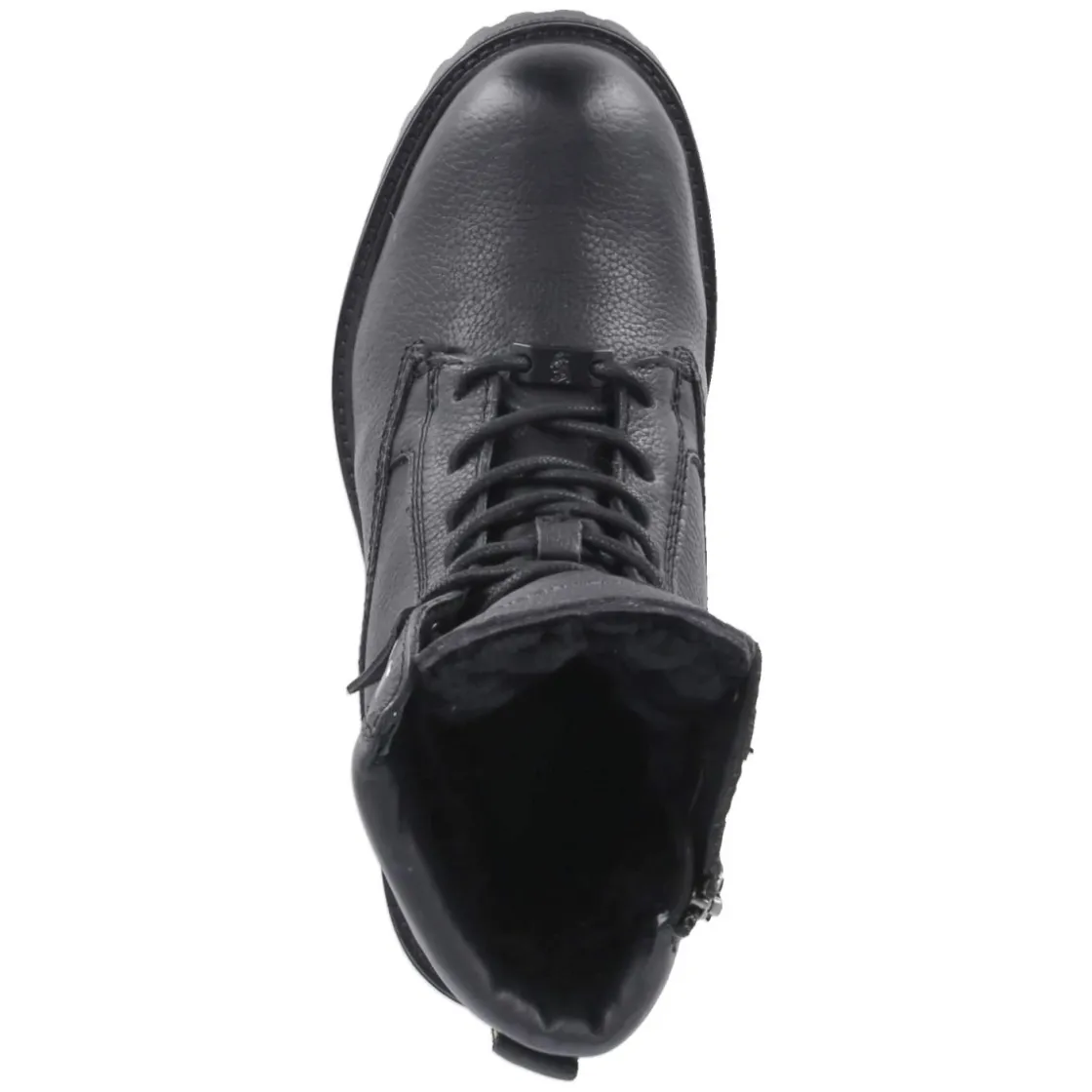 Das Modell Winterboots von Salamander vereint robuste Funktion und klare Ästhetik. Schwarzes Glattleder und eine runde Spitze geben dem Design eine zeitlose Note, während der 4 cm hohe Blockabsatz sicheren Stand bietet. Schnürsenkel ermöglichen die individuelle Weitenregulierung, der seitliche Reißverschluss erleichtert den Einstieg. Für Komfort sorgen gepolsterter Schaft, verstärkte Ferse und eine Textil-Decksohle; das weiche Lammfellfutter hält angenehm warm. Auf glatten Wegen überzeugt die rutschfeste Profilsohle mit zuverlässigem Grip. Die Passform fällt normal aus und eignet sich für den täglichen Stadtalltag ebenso wie für winterliche Spaziergänge. Modetipp: Zu Wollmantel und Strickkleid entsteht ein eleganter Kontrast, alternativ rundet die Stiefelette eine Steppjacke mit gerader Denim stilvoll ab.