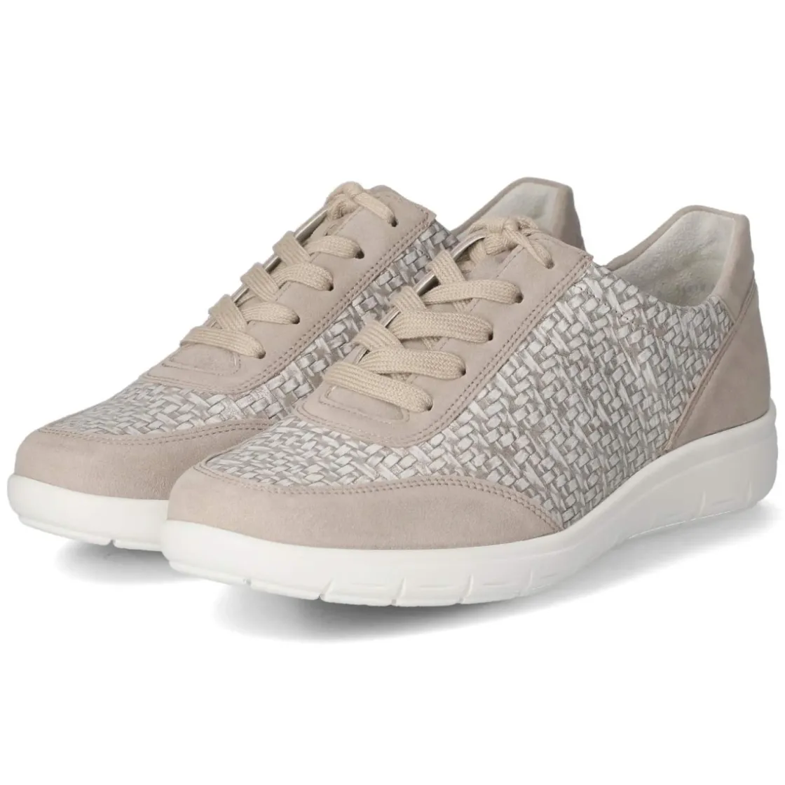 Der Low Sneaker von Semler präsentiert sich als vielseitiger Begleiter für den Alltag. Das Obermaterial aus robustem Echtleder in feinem Rauleder-Finish setzt den warmen Taupeton edel in Szene, während das geometrische Muster einen modernen Akzent verleiht. Die runde Schuhspitze sorgt für ein komfortables Tragegefühl, unterstützt von einer atmungsaktiven Decksohle aus Textil. Ein gepolstertes, herausnehmbares Fußbett entlastet bei jedem Schritt und kann bei Bedarf individuell ersetzt werden. Dank Schnürsenkeln lässt sich die Passform präzise anpassen, und der Größenhinweis „fällt normal aus“ macht die Wahl einfach. Die Markenqualität von Semler steht für zuverlässige Verarbeitung und Langlebigkeit – ideal für aktive Tage ebenso wie für entspannte Stunden. Modetipp: Taupe harmoniert hervorragend mit Creme, Greige und heller Denim; ein monochromes Outfit unterstreicht das geometrische Muster besonders stilvoll.