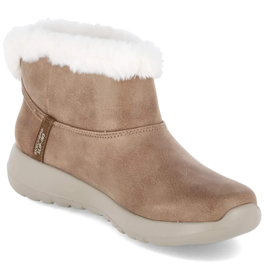 Der Skechers Boots ON THE GO JOY COZY DREAM verbindet gemütliche Wärme mit lässigem Outdoor-Charme. Das braune Textil-Obermaterial mit Scotchgard Durable Protection zeigt sich wasserabweisend und pflegeleicht, der Kunstfellkragen am Schaftrand setzt einen kuscheligen Akzent. Innen sorgt Warmfutter zusammen mit der textilen Decksohle und dem gepolsterten Fußbett für angenehmen Tragekomfort. Die flexible, griffige Laufsohle bietet Halt auf nassem Asphalt wie auf herbstlichen Parkwegen, während das relaxt leichte Design den Alltag mühelos macht. Durch den unkomplizierten Einstieg ohne Verschluss und die runde Schuhspitze ist komfortables Reinschlüpfen garantiert. Das Modell fällt normal aus und ist aus veganen Materialien gefertigt, ideal für bewusste Garderoben. Modetipp: Zu Raw-Denim, Oversize-Strick und einem rustikalen Parka entsteht ein zeitloser Cozy-Look.