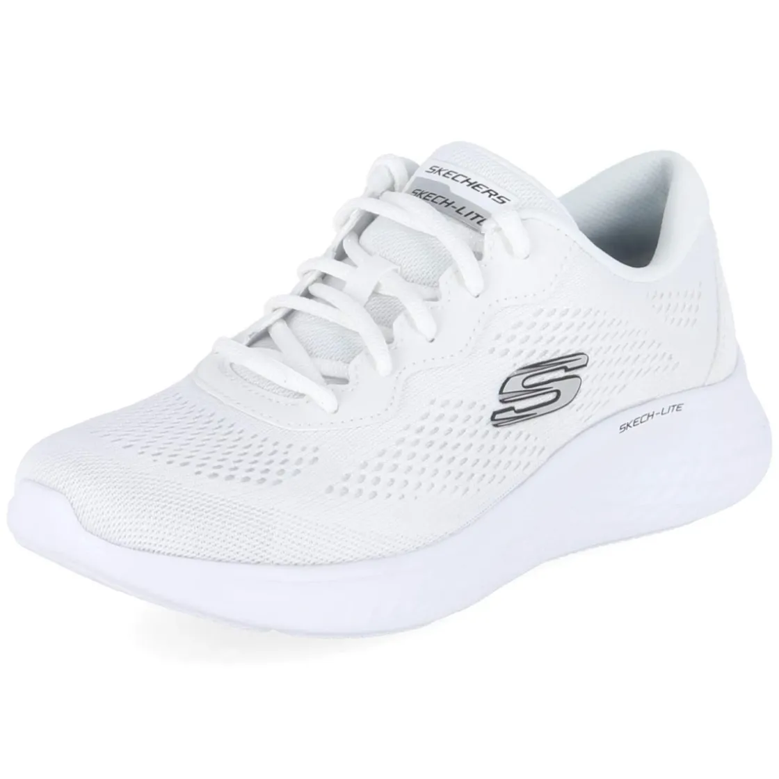 Der Low Sneaker PERFECT TIME von Skechers verbindet sportliche Leichtigkeit mit alltagstauglichem Komfort. Die Strick-Optik mit LITE PRO Flachmesh-Oberfläche sorgt für ein luftiges Tragegefühl, während die verstärkte Ferse Halt gibt. Vegane Materialien und eine textile Decksohle treffen auf eine flexible Laufsohle, die jede Bewegung weich abfedert. Das relaxtes Leichtgewicht mit runder Spitze und klassischer Schnürung fällt größengetreu aus und sitzt dank bester Memory-Foam-Fußbettung vom ersten Schritt an bequem. Das pflegeleichte Obermaterial aus Textil und Synthetik ist waschmaschinengeeignet und bleibt in strahlendem Weiß lange frisch. Für Arbeit, Freizeit oder Reisen eine cleane Wahl, die sich mühelos kombinieren lässt. Modetipp: Den puristischen Look mit einer weiten Anzughose und einem feinen Stricktop aufgreifen; weiße Socken im Sichtbereich setzen einen urbanen Akzent.