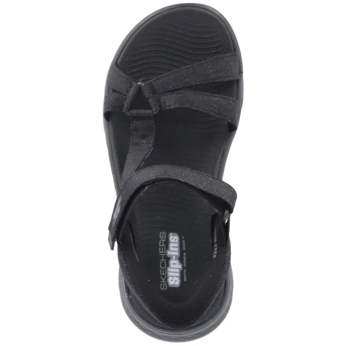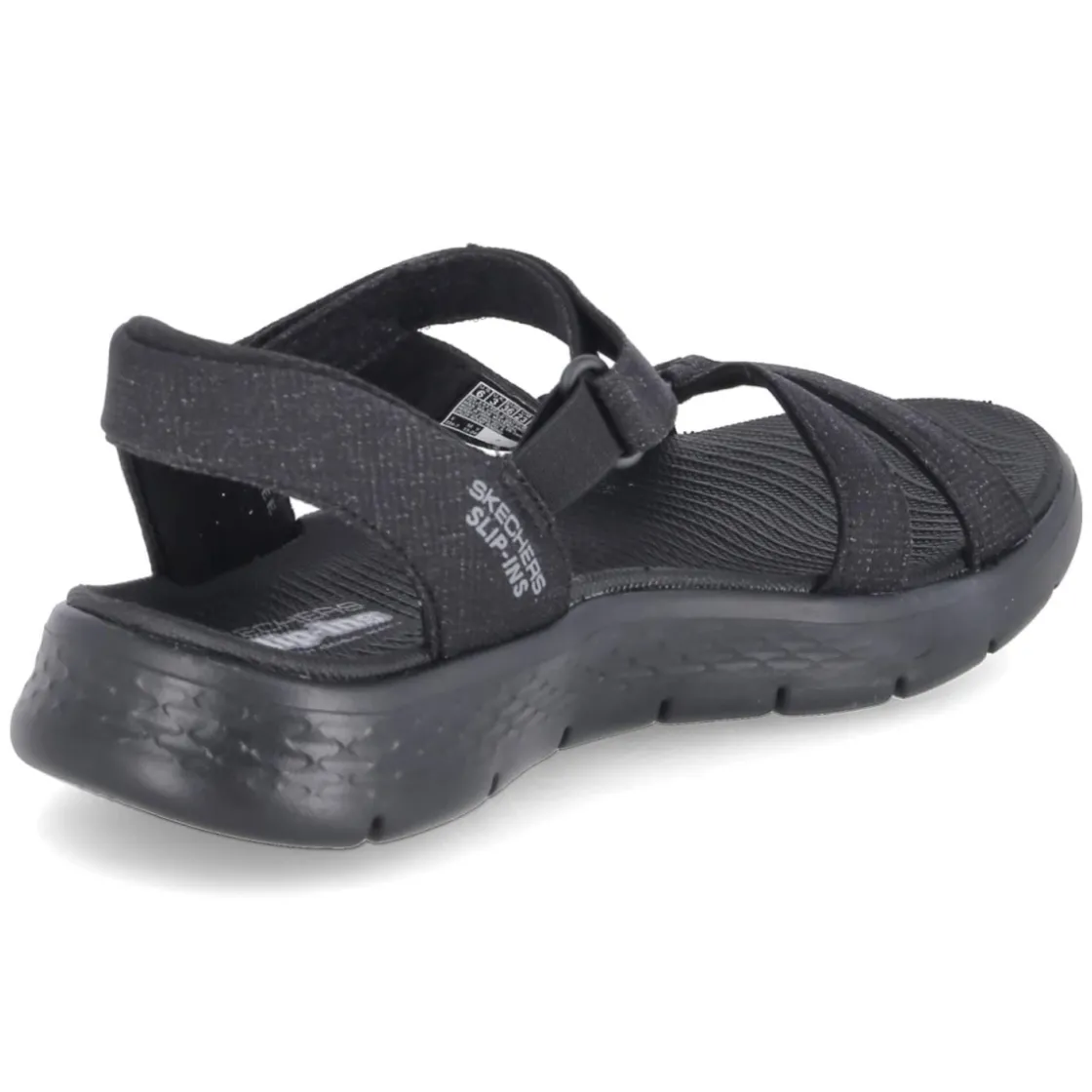Die Slip-Ins Sandalen ILLUMINATE von Skechers verbinden unkompliziertes Hineinschlüpfen mit verlässlicher Alltagstauglichkeit. Das textile Obermaterial in klassischem Schwarz umschließt den Fuß luftig, die offene Schuhspitze sorgt für angenehme Frische. Für spürbares Fußwohl steht die weiche synthetische Decksohle, während die flexible, rutschfeste Laufsohle geschmeidig abrollt. Ein bequemer Klettverschluss mit Elastikeinsatz ermöglicht passgenauen Halt und lässt sich im Handumdrehen regulieren. Pflegeleicht und waschmaschinengeeignet, bleibt der Look lange makellos – ideal für tägliche Wege und spontane Ausflüge. Der Größenhinweis fällt normal aus und erleichtert die Wahl. Modetipp: Mit fließender Culotte in Creme, schwarzem Tanktop und einer schlichten Crossbody-Tasche entsteht ein reduzierter City-Look, der die cleanen Linien der Sandale betont.