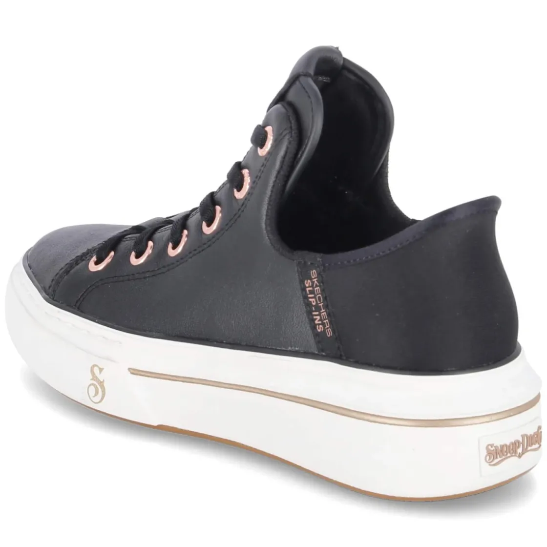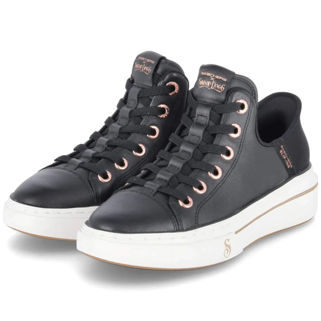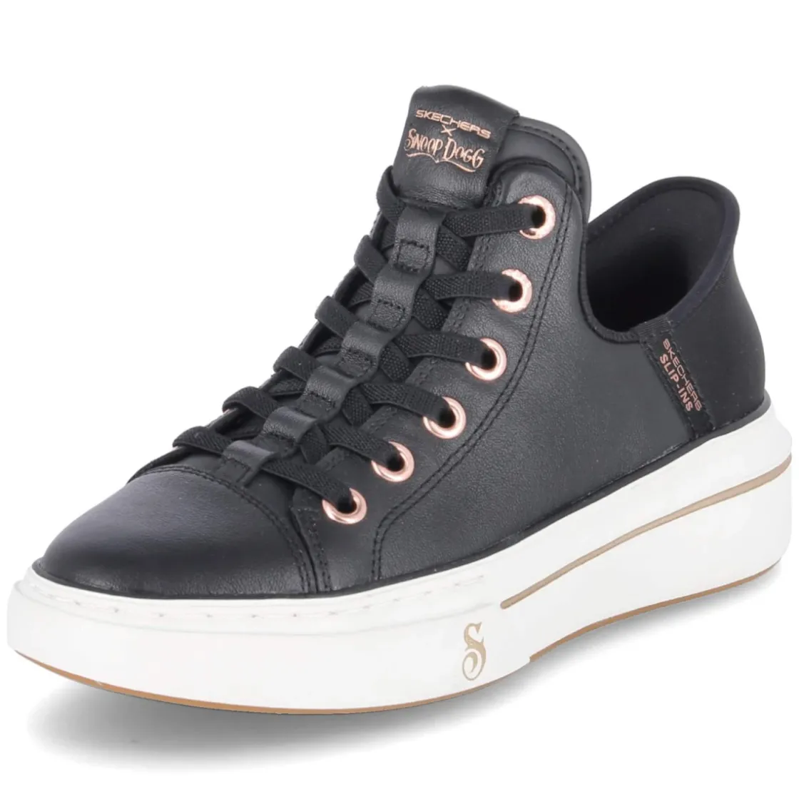 Der Slip-Ins Sneaker OG LEATHER von Skechers verbindet urbanen Stil mit maximalem Komfort. Das Obermaterial aus Leder und Textil zeigt einen robusten Material-Mix, während die textile Decksohle und das weich gepolsterte Fußbett für angenehmes Tragegefühl im Alltag sorgen. Dank des verschlusslosen Designs gelingt der Einstieg unkompliziert, die rutschhemmende Cupsohle mit leichtem Keil verleiht stabilen Halt und eine dezente Extralänge. Verstärkte Zehen- und Fersenbereiche erhöhen die Langlebigkeit, die runde Spitze unterstützt ein entspanntes Abrollen. Schwarzes Finish trifft auf subtile rotgoldene Elemente, eine zierende Schnürung sowie markante Marken- und Künstlerdetails aus der Snoop-Dogg-Kollaboration. Der Sneaker fällt normal aus und passt vielseitig zu Casual- und Streetwear-Looks. Modetipp: Harmoniert mit monochromen Athleisure-Outfits aus weiter Jogpant, Cropped-Blazer und Schmuck in Warmmetallen, die die rotgoldenen Akzente aufgreifen.