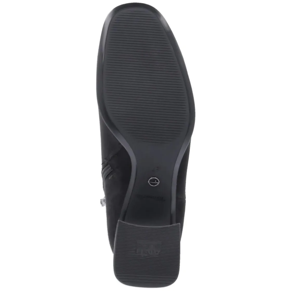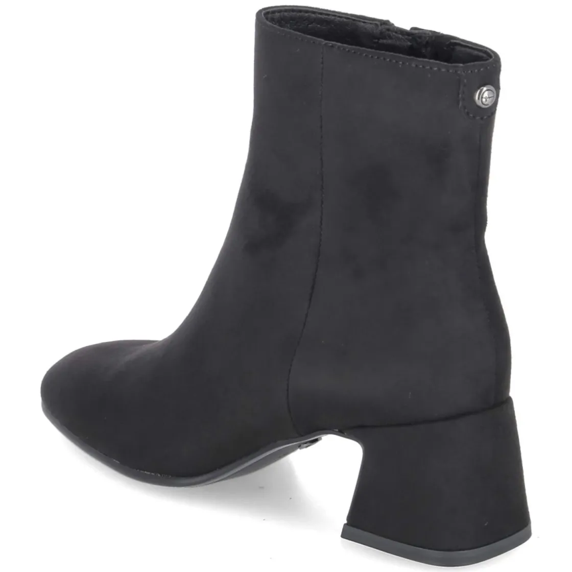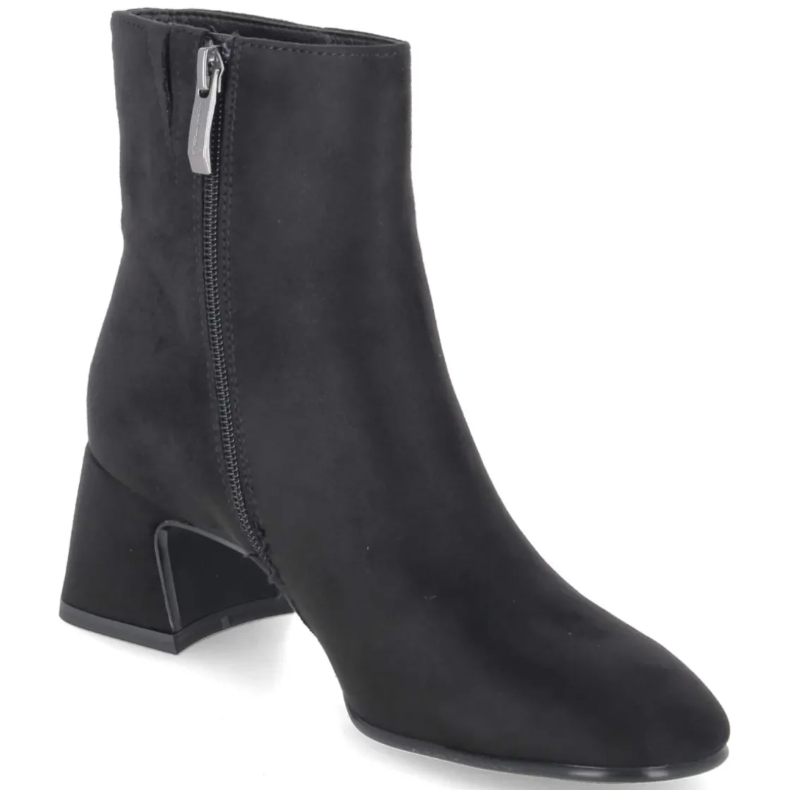 Tamaris präsentiert Ankle Boots in klassischem Schwarz mit rundem Leisten und 6 cm hohem Blockabsatz für souveränen Stand im Alltag und abends. Das textile Obermaterial zeigt eine samtige Oberfläche, der seitliche Reißverschluss mit kleinem Elastikeinsatz am Schaft erleichtert den Einstieg und sorgt für Komfort in Bewegung. Innen punktet eine textile Decksohle, das gepolsterte Fußbett federt Schritte weich ab, während die flexible Laufsohle zuverlässigen Grip bietet. Das vegane Materialkonzept überzeugt ebenso wie das zeitlose Design, das mühelos Business- und Casual-Looks begleitet. Der Schnitt fällt normal aus und richtet sich an erwachsene Trägerinnen. Modetipp: Besonders elegant wirkt das Modell zu Midikleid aus Satinstoff und Oversize-Blazer, dazu eine strukturierte Schultertasche für einen modernen City-Look.
