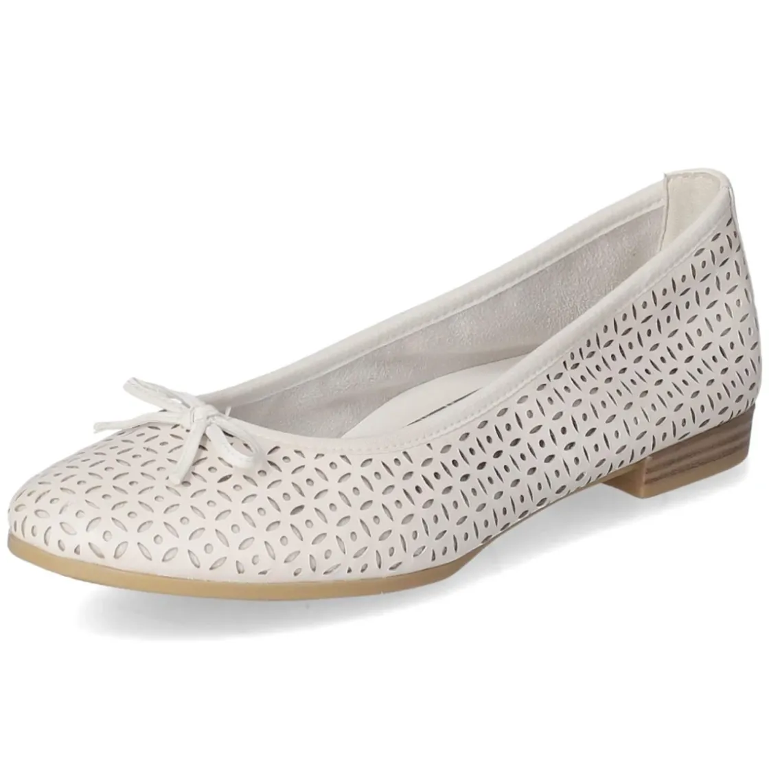 Zeitlos und feminin präsentiert sich dieser weiße Ballerina von Tamaris für Damen. Glattes Echtleder mit runder Schuhspitze und dezenter Zierschleife sorgt für eine elegante Silhouette, während die verstärkte Ferse Formstabilität bietet. Der unkomplizierte Einstieg ohne Verschluss erleichtert das Hineinschlüpfen im Alltag. Eine hautfreundliche Lederdecksohle und das weich gepolsterte Lederfußbett umschmeicheln den Fuß, perforierte Partien fördern ein angenehmes Klima. Die flexible, rutschhemmende Laufsohle unterstützt einen sicheren Schritt auf verschiedenen Untergründen. Das Modell fällt normal aus und eignet sich für Erwachsene, die Wert auf langlebiges Echtleder legen. Modetipp: Zu verkürzter Zigarettenhose und fließender Bluse getragen, entsteht ein cleaner Office-Look; ein klassischer Trenchcoat rundet das Ensemble stadtfein ab.