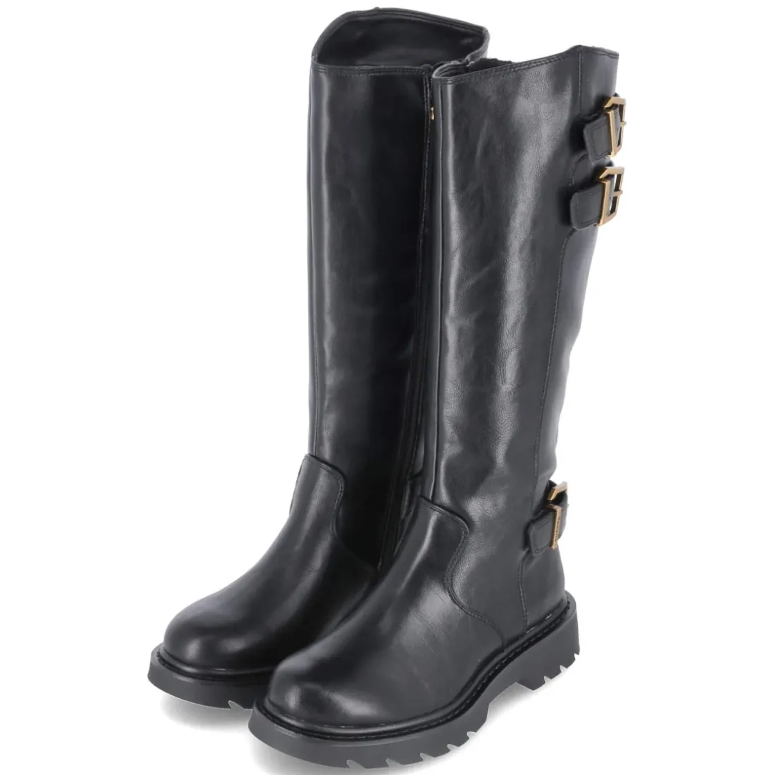 Der schwarze Bikerstiefel von Tamaris verbindet rockige Attitüde mit komfortabler Alltagstauglichkeit. Aus veganen Materialien gefertigt und mit einem Obermaterial aus hochwertigem Synthetik überzeugt das Modell durch klare Linien und eine runde Kappe. Der 3,5 cm hohe Blockabsatz sorgt für stabile Höhe, während das gepolsterte Fußbett und die textile Decksohle angenehme Dämpfung bieten. Ein leichtes Fleecefutter umschmeichelt die Füße an kühleren Tagen. Der praktische Reißverschlusseinstieg erleichtert das Anziehen; drei Riemen mit Schnallen am hinteren Schaft sowie ein kleiner Elastikeinsatz erhöhen die Anpassungsfähigkeit. Die rutschfeste Profilsohle bietet Trittsicherheit, eine verstärkte Ferse unterstützt den Halt. Mit Schafthöhe ca. 37 cm und Umfang ca. 36 cm wirkt der Stiefel präsent, bleibt aber alltagstauglich. Fällt normal aus. Modetipp: Zu Midikleid aus Strick und Blazer kontrastiert der Boot lässig-elegant.