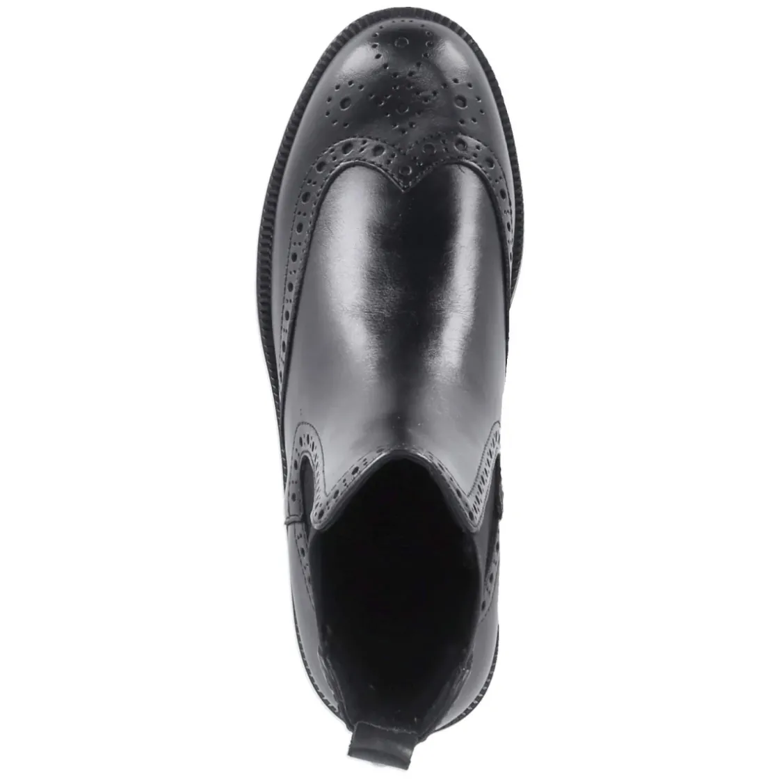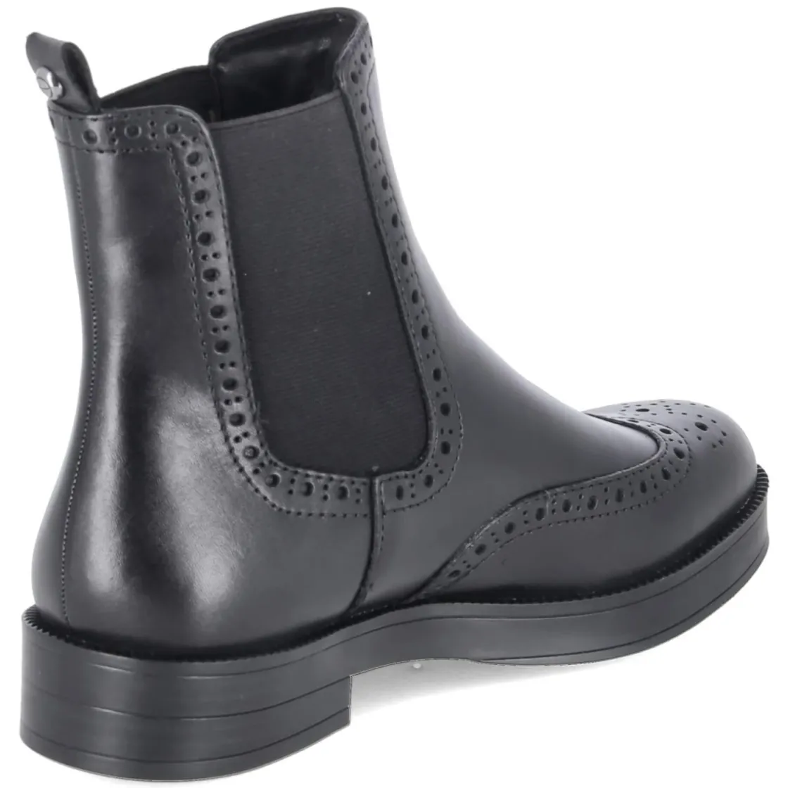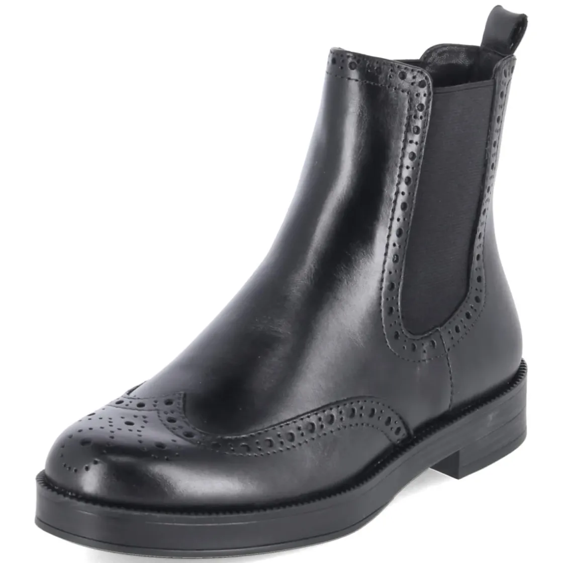 Zeitloser Auftritt mit den Chelsea Boots von Tamaris: Das schwarze Modell verbindet ein modisches Design mit klassischer Budapester Lochung und rundem Leisten. Obermaterial aus Leder und Textil sorgt für wertige Haptik, seitliche, großflächige Elastikeinsätze und Anziehlasche erleichtern das Hineinschlüpfen ganz ohne Verschluss. Der 3,5 cm hohe Blockabsatz bietet stabilen Stand, die flexible, rutschfeste Laufsohle und das gepolsterte Fußbett erhöhen den Komfort im Alltag. Dank normaler Passform fällt das Modell größengetreu aus und begleitet stilvoll durch Büro, Freizeit und abendliche Anlässe. Modetipp: Besonders elegant wirkt der Boot zu knöchellangen Zigarettenhosen und einem strukturierten Wollmantel; ein feiner Stricksocke in Ton-in-Ton rundet den Look ab.