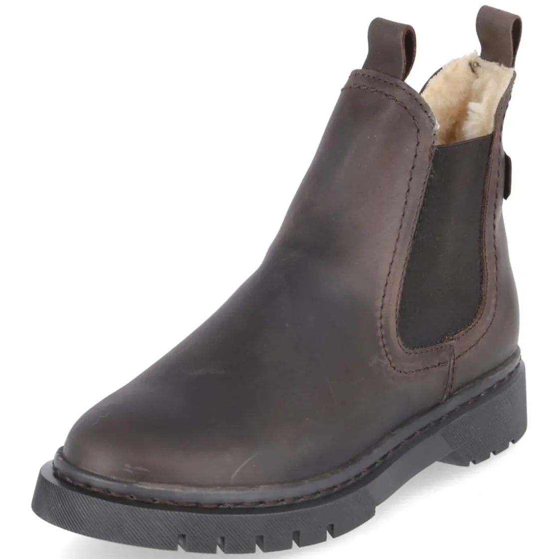 Zeitloser Stil trifft auf funktionale Details: Der Damen-Chelsea-Boot von Tamaris präsentiert sich in einem warmen Braunton und setzt auf ein wetterfestes Obermaterial aus weichem Rauleder. Das kuschelige Warmfutter macht kalte Tage angenehmer, während die textile Decksohle zusammen mit dem herausnehmbaren Wechselfußbett für anpassbaren Komfort sorgt – auch mit individuellen Einlagen. Zwei große, seitliche Elastikeinsätze und zwei Anziehlaschen ermöglichen einen unkomplizierten Einstieg; die verstärkte Ferse gibt zusätzliche Stabilität. Mit rund zulaufender Spitze und 3,5 cm hohem Blockabsatz bietet der Boot einen sicheren Auftritt. Die flexible, rutschfeste Profilsohle liefert Halt auf glatten Untergründen. Die Passform fällt normal aus. Modetipp: Zu geradem Denim, Wollmantel und Feinstrick wirkt der Chelsea klassisch, zum Midikleid und Strumpfhose entsteht ein moderner Kontrast.