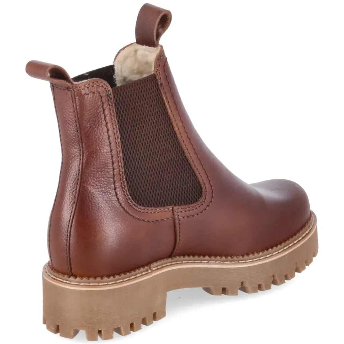 Tamaris präsentiert einen klassischen Chelsea Boot für Damen, der zeitlose Eleganz mit durchdachtem Komfort verbindet. Das braune Glattleder aus robustem Echtleder zeigt eine edle Maserung und wird von zwei großen, seitlichen Elastikeinsätzen eingerahmt, die den charakteristischen Look unterstreichen und den Einstieg erleichtern. Zwei praktische Anziehlaschen und der Verzicht auf einen Verschluss betonen die unkomplizierte Handhabung. Innen sorgt ein warmes Futter gemeinsam mit einem gepolsterten Fußbett und textilem Decksohlenmaterial für behagliches Tragegefühl an kalten Tagen. Die runde Schuhspitze und der 4 cm hohe Blockabsatz bieten alltagstaugliche Proportionen, während die rutschfeste Profilsohle verlässlichen Grip liefert. Der Leisten fällt normal aus und passt Erwachsenenfüßen komfortabel. Modetipp: Braun harmoniert hervorragend mit cremefarbenem Strick, gerader Denim und kamelfarbenem Wollmantel setzen den Boot stilvoll in Szene.