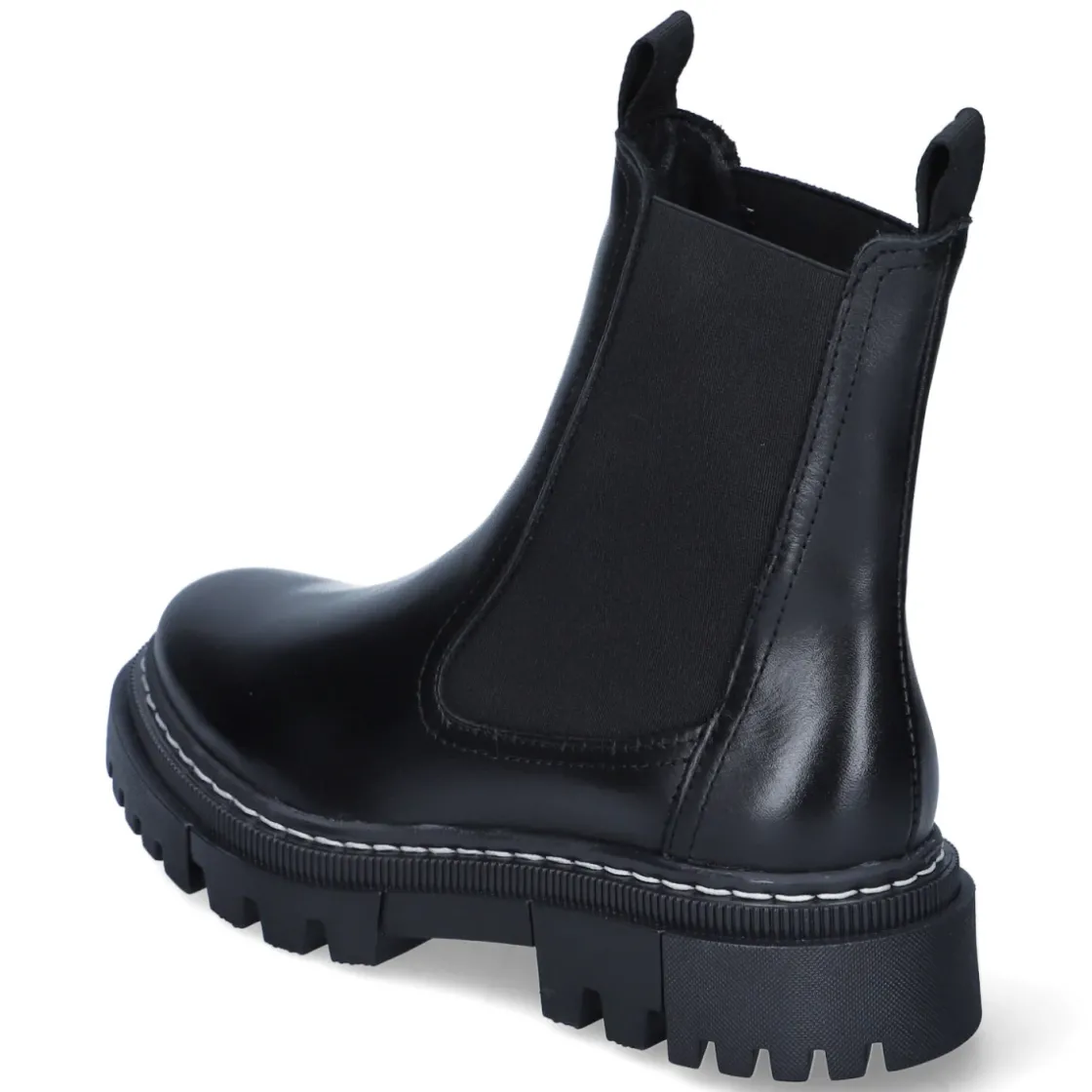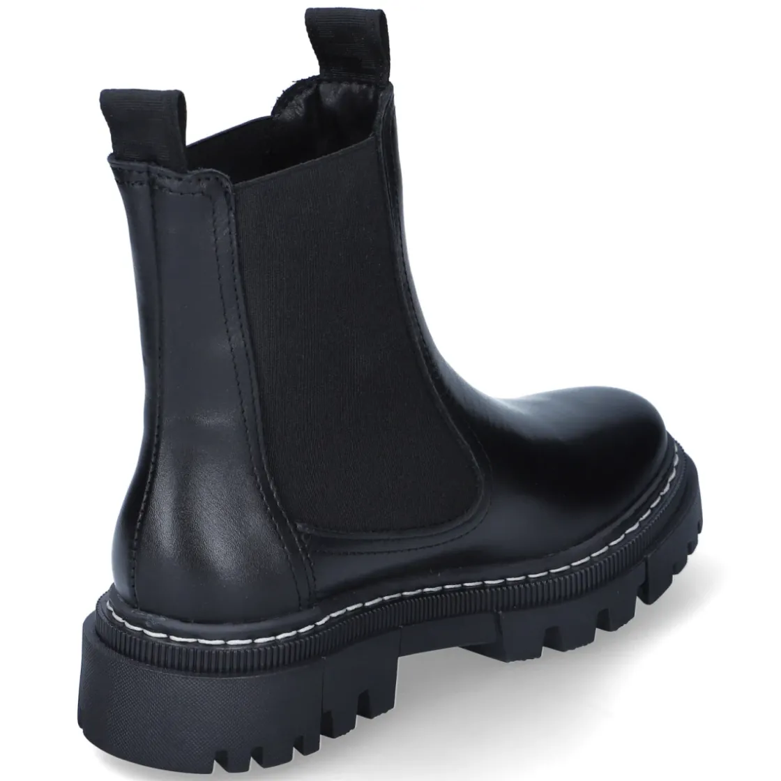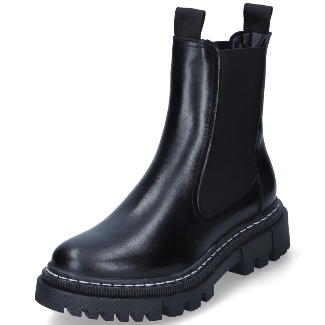 Diese Chelsea Boots von Tamaris interpretieren den Klassiker in zeitlos schwarzem Glattleder. Das langlebige Echtleder schmiegt sich formstabil an und erhält durch zwei große, seitliche Elastikeinsätze den typischen Look. Zwei Anziehlaschen erleichtern das Hineinschlüpfen, der Verzicht auf Verschluss sorgt für puren Komfort. Ein 4 cm hoher Blockabsatz und die rutschfeste Profilsohle bringen zuverlässigen Halt, während die runde Spitze und die textile Decksohle ein angenehmes Tragegefühl fördern. Das komfortable Wechselfußbett lässt sich bei Bedarf austauschen oder durch eigene Einlagen ersetzen. Elastikeinsatz am Schaft und sorgfältige Verarbeitung machen dieses Paar zum vielseitigen Begleiter im Alltag und im Büro. Modetipp: Zu Cropped-Jeans und Wollmantel entsteht ein moderner Kontrast; mit Midikleid und blickdichten Strümpfen wirken die Boots besonders elegant.