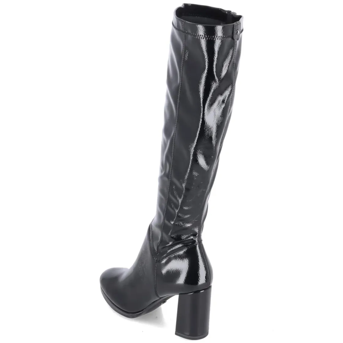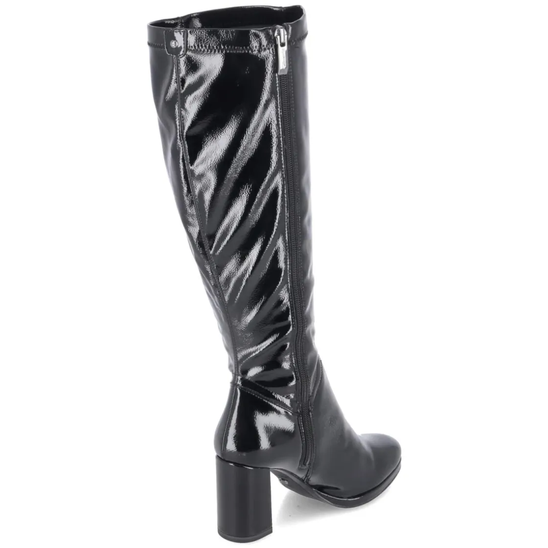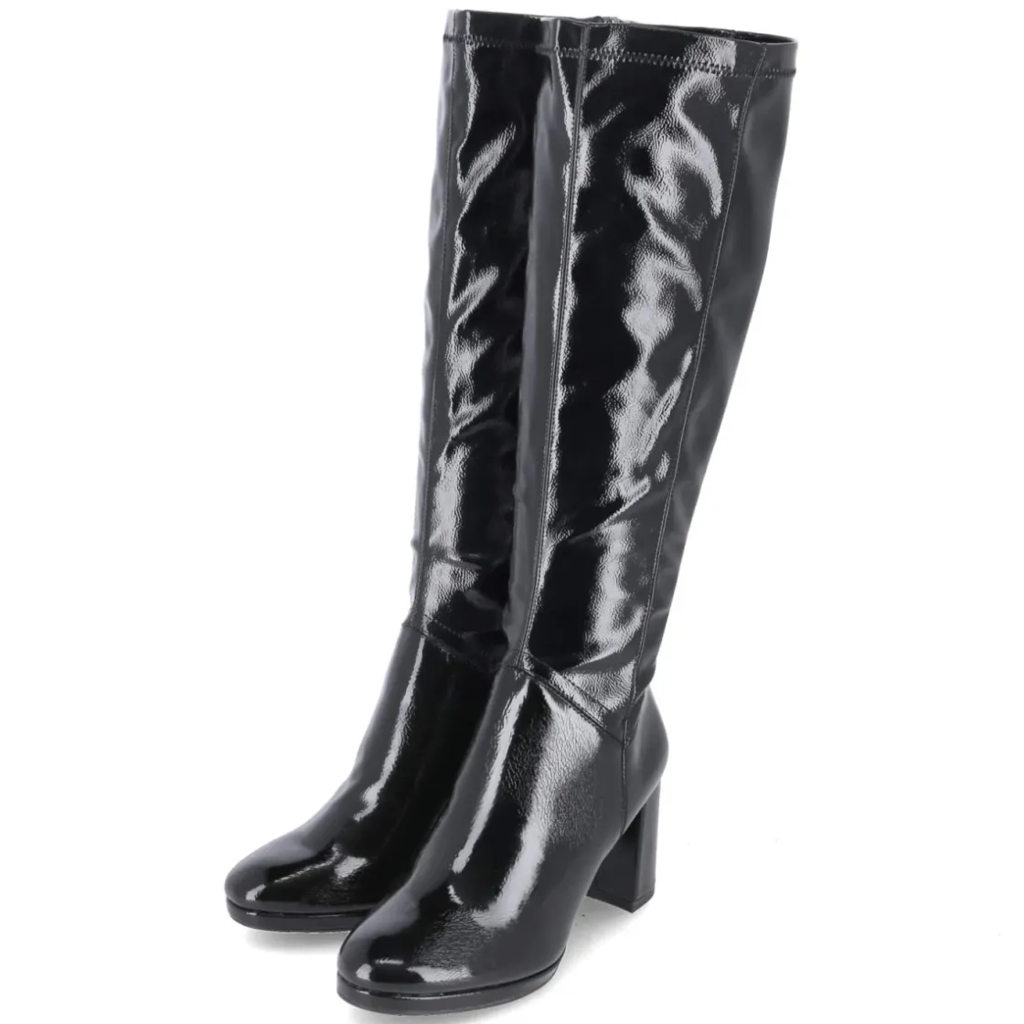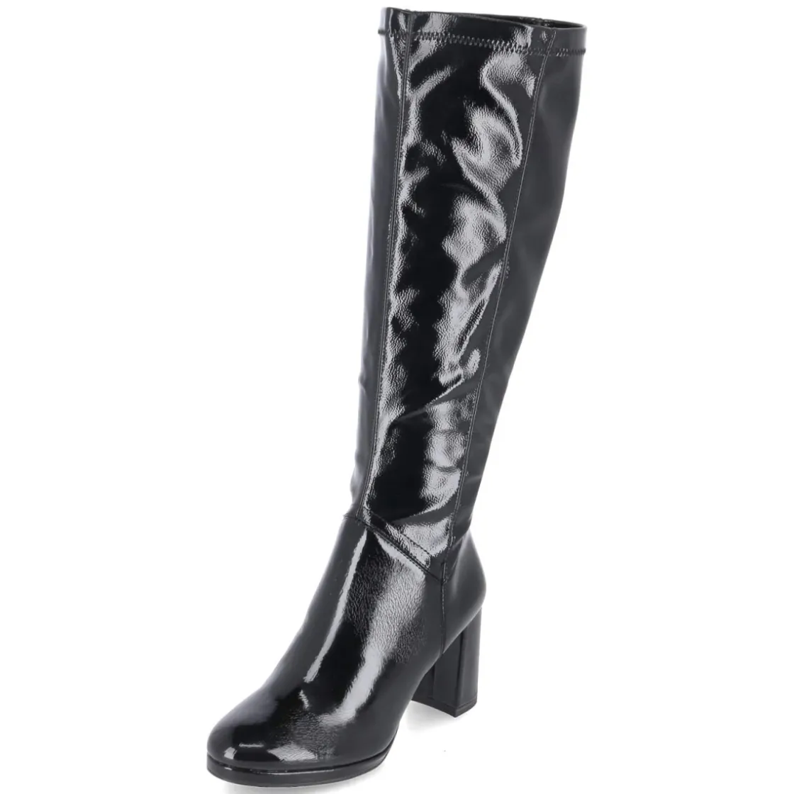 Der schwarze Lackstiefel von Tamaris setzt mit seiner glänzenden Oberfläche ein souveränes Statement und bleibt dabei erstaunlich komfortabel. Der 8 cm hohe Blockabsatz bringt Höhe und Stabilität, die runde Spitze sorgt für ein angenehmes Tragegefühl im Alltag. Ein gepolstertes Fußbett mit Textildecksohle schont die Füße, während die flexible Laufsohle sanft abfedert. Durch den praktischen Reißverschluss gelingt der Einstieg mühelos. Mit einem Schafthöhenmaß von ca. 39 cm und einem Umfang von ca. 34 cm umschmiegt der Stiefel die Wade formschön. Das Obermaterial aus Synthetik präsentiert die elegante Lackoptik besonders brillant. Der Schnitt fällt normal aus und erfüllt damit gängige Passformen. Modetipp: Für einen modernen City-Look den Stiefel zu einem Strickkleid in Midilänge und einem strukturierten Mantel kombinieren – Ton-in-Ton mit schwarzen Accessoires entsteht eine besonders edle Silhouette.