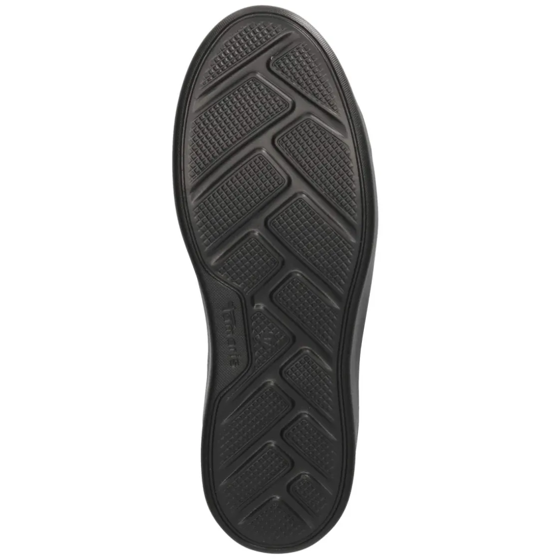 Der Low Sneaker von Tamaris in klassischem Schwarz vereint eine klare, urbane Silhouette mit durchdachtem Komfort. Der robuste Material-Mix aus Leder und Synthetik steht für Formstabilität und eine wertige Haptik, die runde Schuhspitze sorgt für angenehme Zehenfreiheit. Schnürsenkel und zusätzlicher Reißverschluss ermöglichen ein unkompliziertes An- und Ausziehen sowie passgenauen Halt, die Passform fällt normal aus. Ein komfortables Wechselfußbett auf synthetischer Decksohle unterstützt den Fuß und lässt sich bei Bedarf austauschen. Verstärkte Ferse, gepolsterter Einstieg und die flexible, rutschhemmende Laufsohle bieten verlässliche Stabilität auf diversen Untergründen. Dezenter Markenschriftzug unterstreicht den cleanen Look und macht den Sneaker vielseitig kombinierbar. Modetipp: Für einen modernen City-Style mit Cropped-Jeans, weißem Basic-Shirt und Oversize-Blazer tragen; für einen sportlich-eleganten Twist optional mit feinen Rippensocken akzentuieren.